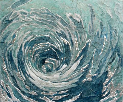 La mostra presenta lavori recenti incentrati sul tema dell’acqua. Onde che si inseguono, superfici increspate, gorghi, mulinelli, scrosci di pioggia, ribollii e sommovimenti dell’elemento liquido in perenne movimento: a volte tempesta inquietante a volte sciabordìo calmo e rassicurante. Sono opere la cui natura oscilla tra il dipinto e la scultura, realizzate con una tecnica del tutto personale fatta di stucchi, rilievi in metallo e leggere velature di colore che rendono la trasparenza e la dinamicità dell’elemento.