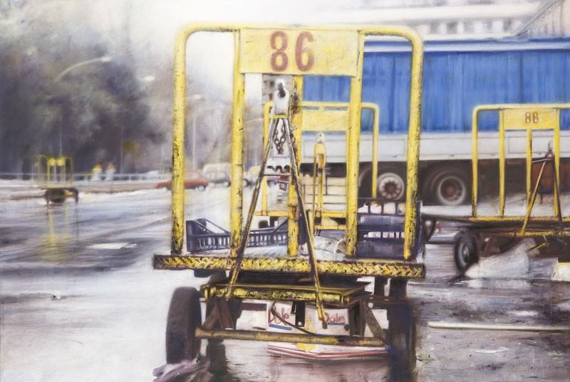 Emilio CAFIERO conferma l’alta qualità complessiva del suo processo elaborativo. I quadri nascono sempre da una meticolosa lentezza tecnica, da un’attitudine spirituale che usa il realismo di natura fotografica (diverso dai caratteri dell’iperrealismo) per un impatto ipertestuale alla Gerhard Richter. Due percorsi architettonici danno la misura e la collocazione del progetto odierno: da una parte gli alberi con la loro ramificazione scheletrica, dall’altra le architetture industriali di vari stabilimenti e spazi per attività pesanti, a cui si affiancano alcuni macchinari che completano una visione del reale senza umanità in campo. Gli estremi si attraggono attraverso il moto lenticolare di Cafiero, attraverso un modello “orientale” che vibra lungo la dilatazione dei modi esecutivi. La forma narrata è quella di una natura che cambia con processi mimetici ma inesorabili. Una natura, sia naturale che artificiale, in cui la forma diviene il pretesto per una mappatura del confine infinitesimale, quel diaframma di passaggio tra vita e morte, bellezza e degrado, apparenza e consunzione. L’artista agisce da sempre sul brandello metafisico che lega l’esistente alla memoria. Un’azione pittorica, in altri casi fotografica, dove l’occhio silente amplifica la vitalità, ambigua e complessa, dell’indagine figurativa. Un occhio sul mondo reale. Un occhio dentro se stessi.