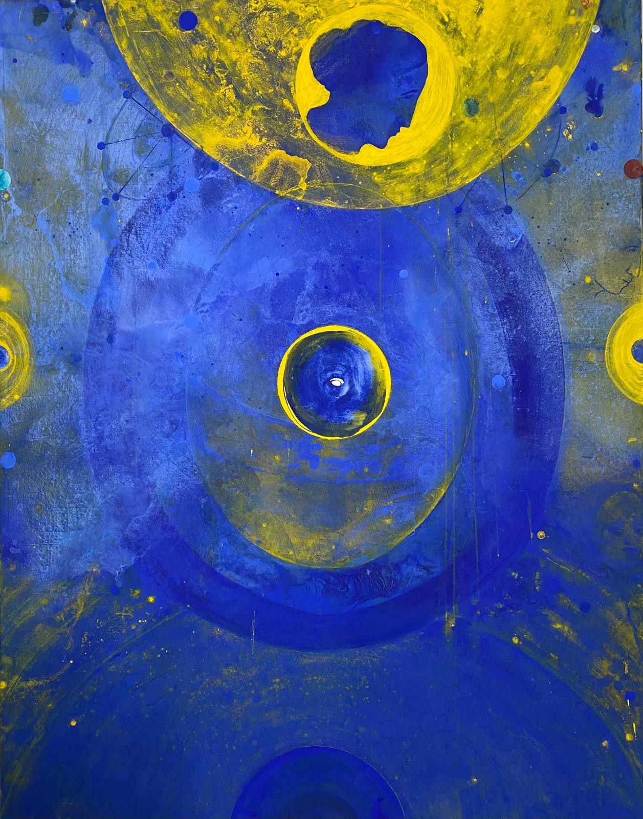 In mostra una serie di opere dipinte tutte su carta, la maggior parte inedite e realizzate proprio per l’occasione. Al centro della ricerca dell’artista la profonda attrazione per la materia e l’energia, i pianeti, le stelle e l’indissolubile legame tra il micro e macrocosmo.