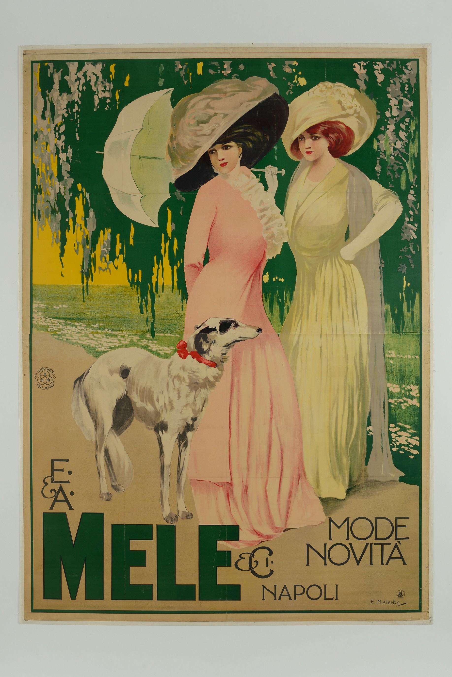 Dopo essersi formato all’Accademia di Brera, Emilio Malerba esordì nel 1906, con opere che si avvicinano alla tarda Scapigliatura, tra paesaggi e ritratti di soggetti evanescenti, mentre in seguito riuscì a distinguersi soprattutto per la realizzazione di cartelloni pubblicitari che rimandano al mondo della belle époque. Tra quelli esposti alla Fondazione Ragghianti troviamo i manifesti ideati per l’Amaro Ramazzotti di Milano e per i Grandi Magazzini Italiani E. & A. Mele & C. di Napoli, dove emerge l’interesse dell’autore per la figura femminile e la sua rappresentazione, in seguito volta all’espressione della vita interiore dei soggetti, piuttosto che alla loro resa fisiognomica.