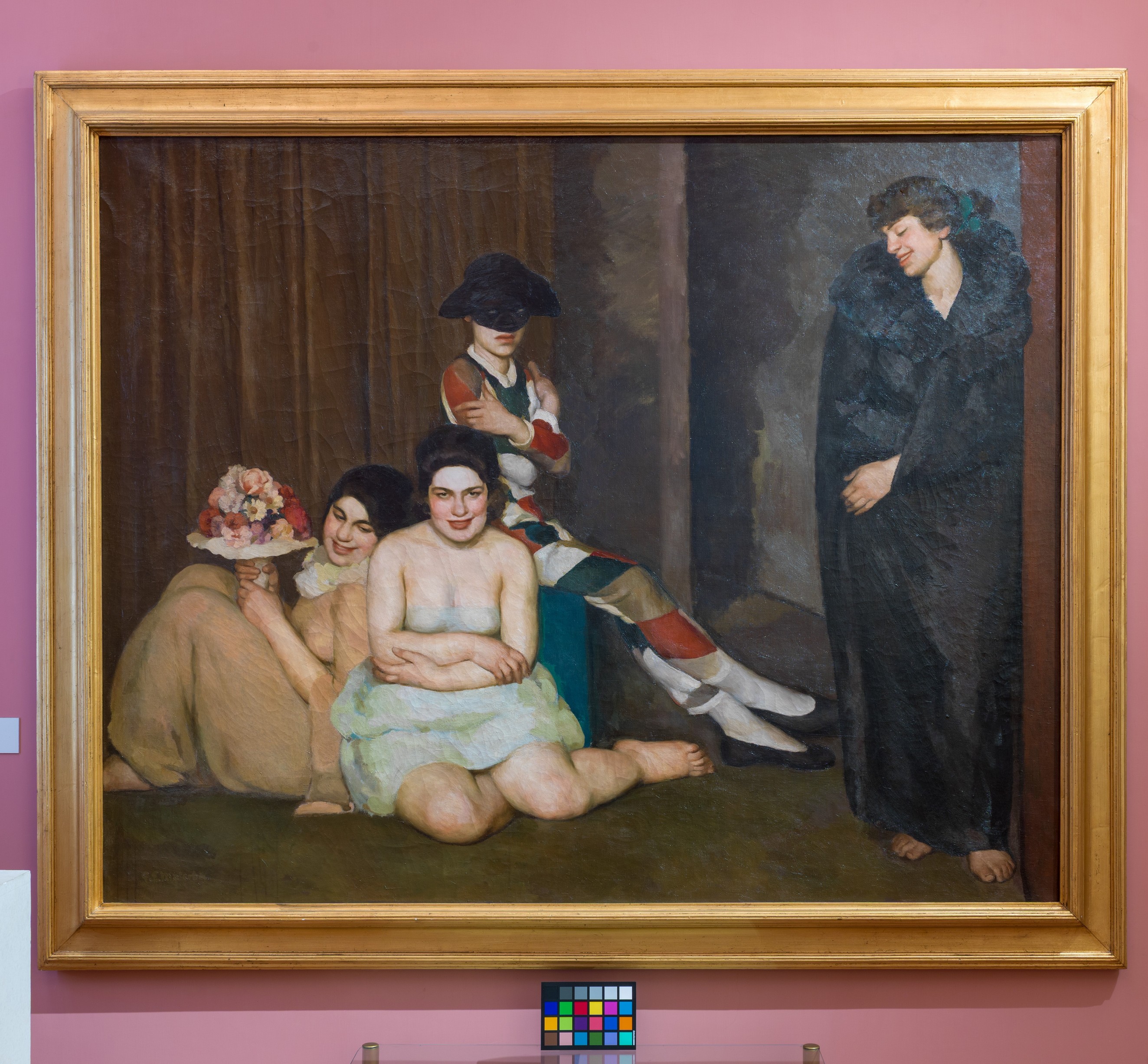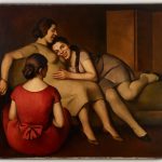 Dal 1916 l’artista definì in maniera più strutturata la sua pittura, tanto che nel 1922 espose alla XIII Biennale di Venezia una serie di dipinti, tra cui il celebre “Le maschere” (1922), presente nella mostra lucchese, che mette in luce la sintonia di Malerba con la nuova corrente del Realismo magico, dove la resa minuziosa del mondo ne rivela paradossalmente l’essenza misteriosa e inafferrabile. Sensibilità che emerge anche in opere come “Ritratto di giovinetta” (1919) o “Femmina volgo” (1920), in cui i soggetti si fanno più nitidi eppure sfuggenti, immersi in contesti quotidiani ma segretamente incantati. Ora, come in seguito, l’immaginario di Malerba è quello dell’intimità domestica, delle confidenze familiari, di vite che non oltrepassano il perimetro di una stanza, di donne, bambine e adolescenti immerse nel loro piccolo universo, che lascia trasparire, dietro il velo dell’esistenza di tutti i giorni, la delicatezza di sentimenti e l’introversa sensibilità che anima le sue protagoniste.