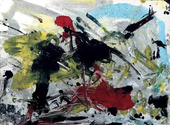 Il monotipo respira la propria unicità, il suo farsi oggetto tra le mani quale evento altro. Non contro, ma inverso e contrario. Spazio opposto a quello della pittura, allora, sebbene questa ne sia genesi irrinunciabile ma irrisolta fino alla migrazione, al compiersi sull'altro lido. Luogo interstiziale, per definizione, agito nella propria ambigua fisicità, sonda privilegiata di quella possibilità, in primis semantica, che è carne stessa della pittura, è allora varco, segno liberato dalla servitù dell'essere traccia. La permutazione su carta è teatro di un nuovo evento: tellurico sì ma ancor più sacro. Oltre il tempo dell'ordine - qui Vedova e la pittura - il tempo dell'apertura, del rito e della festa: dell'alterità che si compie nell'alchimia di un gesto antico.