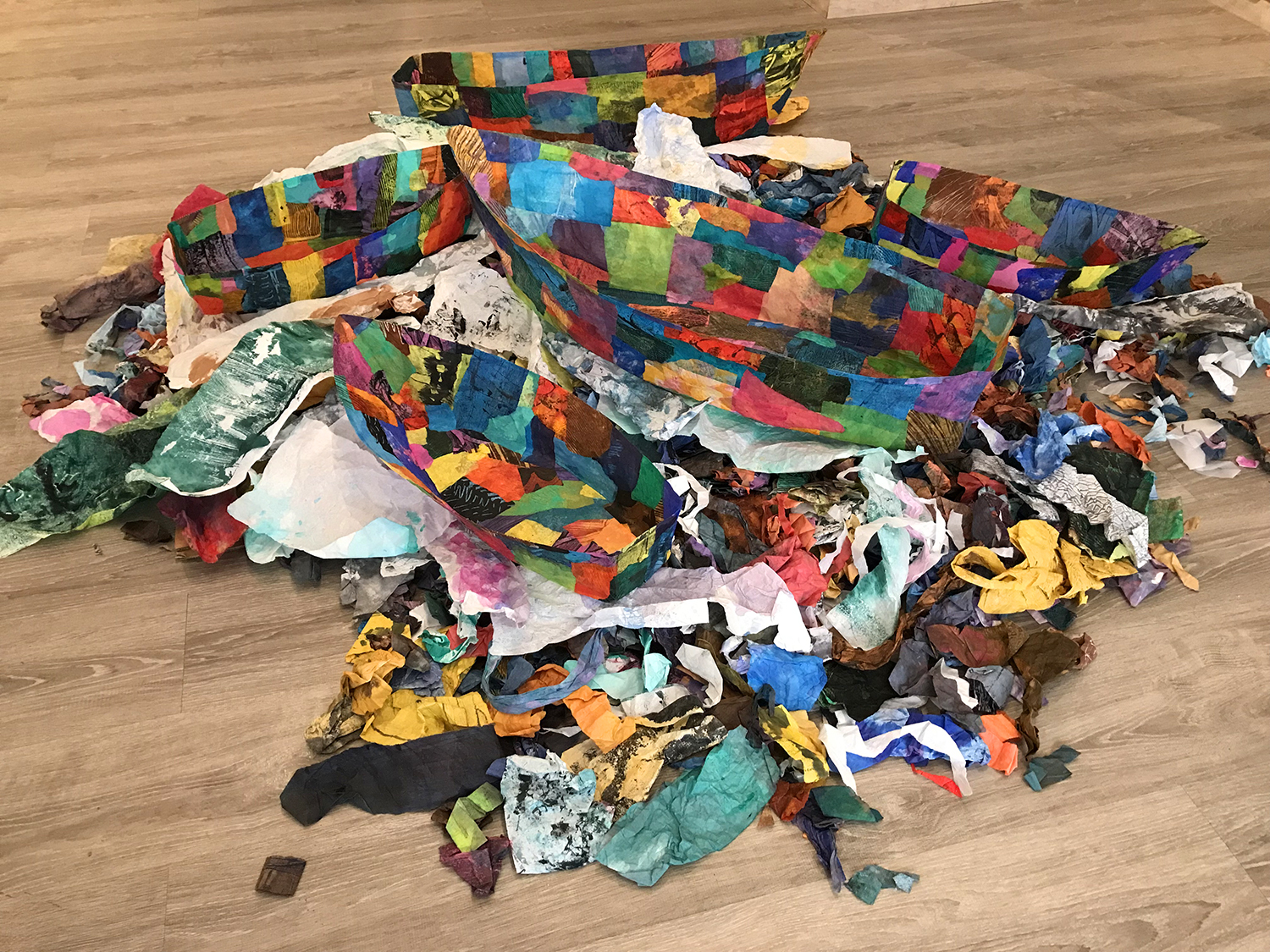 L’artista presenta Scarti d’Arte, un’installazione fatta di sottoprodotti cartacei derivati dai suoi processi lavorativi artistici.