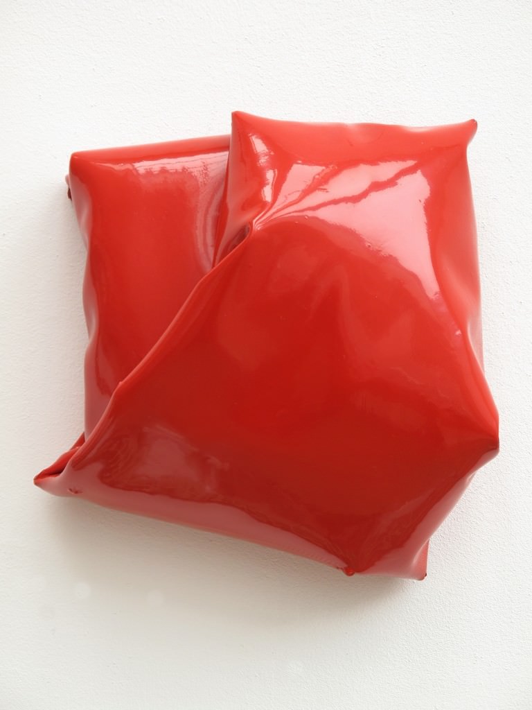 La pittura intesa come materia non ha supporto, scivola sulla tela, sgocciola via, deborda rapidamente i contorni del quadro, asciuga, coagula si trasforma ed infine solidifica, tramutandosi in un oggetto che fluttua nello spazio.