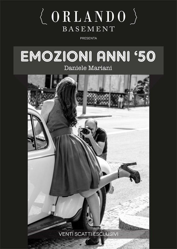 Per Alessandro Orlando propone una serie di scatti digitali in bianco e nero plottati su carta fotografica nonché, sempre legati alla stessa tematica, una decina di istantanee Polaroid di modelle in abiti anni 50. La mostra si intitola “Emozioni Anni 50” ovverosia quel modo di essere e di vivere un po’ sbarazzino, ammiccante e malizioso, delle ragazze pin-up perfettamente idealizzate nell’America progressista e scintillante del boom economico post-bellico.