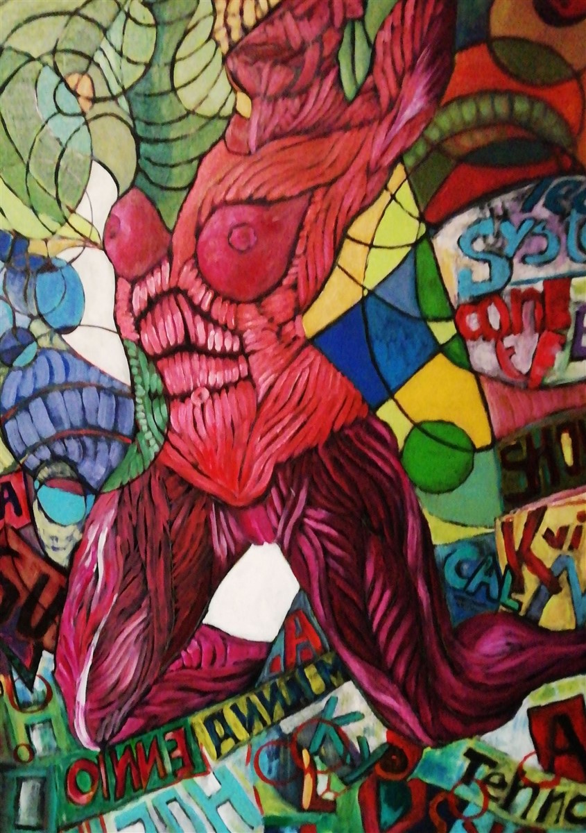 Infatti, come indicato da Chivilò all’interno del testo critico: “Ogni tela di Bastiani vive all’interno di labirinti concettuali retti da sagome proto cellulari ingrandite al fine di fornire elementi utili a disorientare, ma essenzialmente, utili a visualizzare un possibile oltre che si compone in tratti umanizzati. In questa visione, attraverso fitti accostamenti composti da segni modulari, ideati dall’artista stesso lungo continui effetti, si crea una tendenza a vedere contorni ed oggetti in strutture amorfe noto come pareidolia: dalla natura l’osservatore viene condotto a fornire un significato a forme casuali associandole a figure in questo caso femminee.