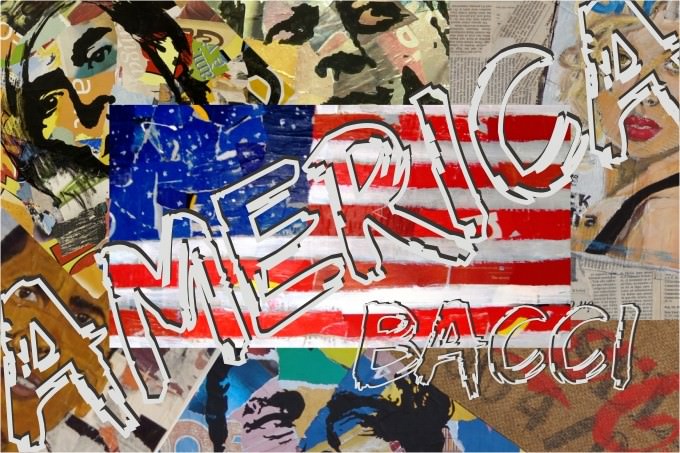 Bacci adopera nella pittura la tecnica mista del collage, da un frammento strappato ad un affiche nasce la ricerca sul collage e le infinite possibilità pittoriche, quindi il decollage man mano si modifica e diviene collage strutturato-destrutturato con ricomposizione e aggiunta dei colori in un mix non solo di carta che trasforma il momento iniziale della creazione in un lavoro - con un tocco tutto personale- dei contenuti nuovi, veicolati salvaguardando immagini pubblicitarie, destinate all’oblio ma nobilitati dal fare artistico.