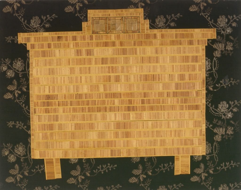 In tutta l’opera di Baj è riscontrabile una tendenza “antropomorfizzante” alla quale neanche i mobili si sottraggono: già buona parte di essi suggerisce una personificazione delle forme, infine compiono il loro processo metamorfico portando Baj ad abbandonare il disegno di ante e cassetti a favore della figura. Nascono così personaggi veri e propri, esuberanti ed elegantissimi nel loro corpo di tarsie e profilati su stoffe nere damascate: lontani dunque dall’aggressività dei personaggi precedentemente creati da Baj. Questi personaggi sono composti da elementi estremamente semplici: corrispondono a un momento di divertimento immaginativo dell’artista. Gli intarsi così impiegati, giocando cioè su iterazioni assolutamente elementari, perdono la carica Kitsch per disporsi a corollario di un’immagine tesa a essere fantastica apparizione.
