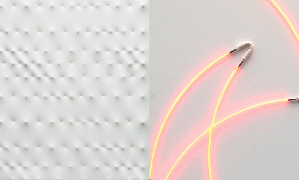 Di François Morellet verranno presentate opere di grandi dimensioni delle serie “Décrochage” e “p piquant neonly”, nelle quali l’invito a seguire determinati percorsi della visione, interrotti e contraddetti dalla pulsazione luminosa frammentata, è accompagnato dalla creazione di una situazione di tensione. Lo sguardo viene costantemente spostato dalla percezione dell’insieme alla presenza inaspettata del singolo elemento, dalla geometria regolare e cadenzata della costruzione globale alla imprevedibilità e alla precarietà della esperienza che comporta il viverla dall’interno, l’entrare nell’immagine.