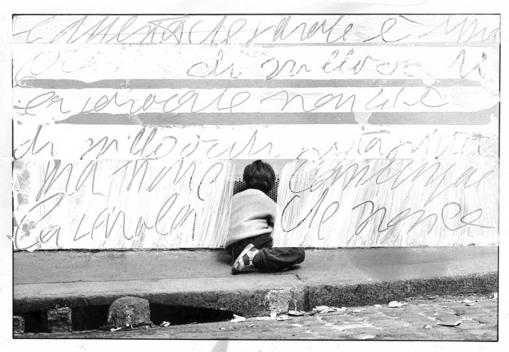 In mostra opere bianche appena segnate dalla divisione dello spazio e dalla parola, che tenta di appropriarsi della tela. E opere su carta dove il colore copre il segno calligrafico occultandolo ed portando lo spettatore a frugare tra le immagini fino a farlo diventare complice.