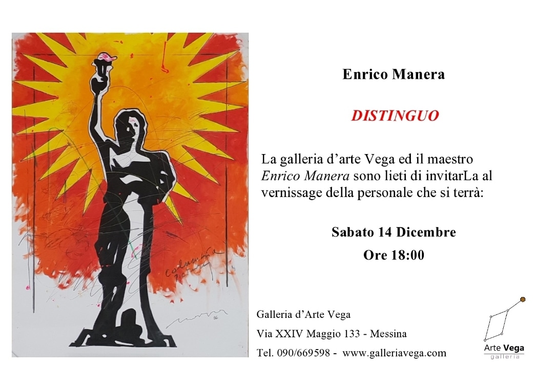 Sabato 14 dicembre 2019 alle ore 18,00 la Galleria d’Arte Vega di Messina inaugura la mostra “Distinguo” dipinti storici ed inediti di Enrico Manera.