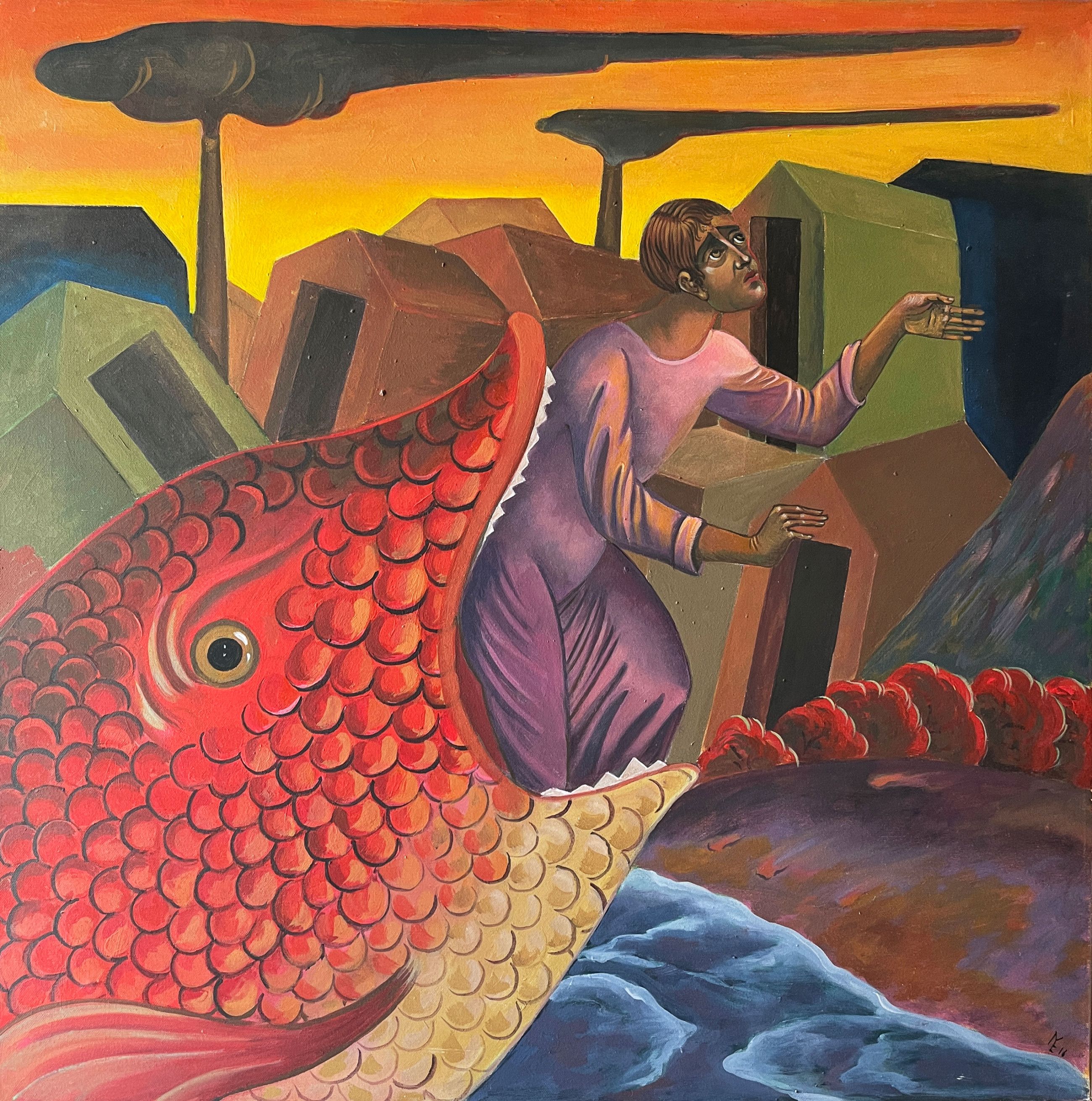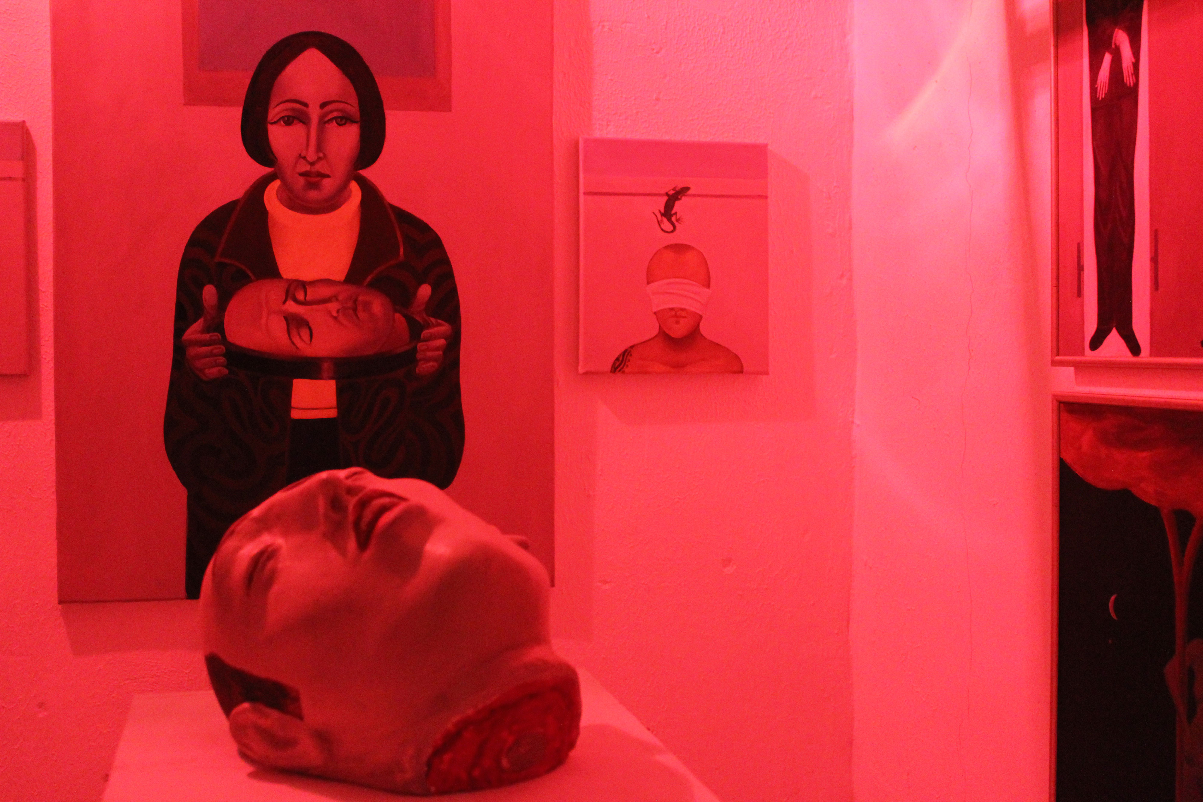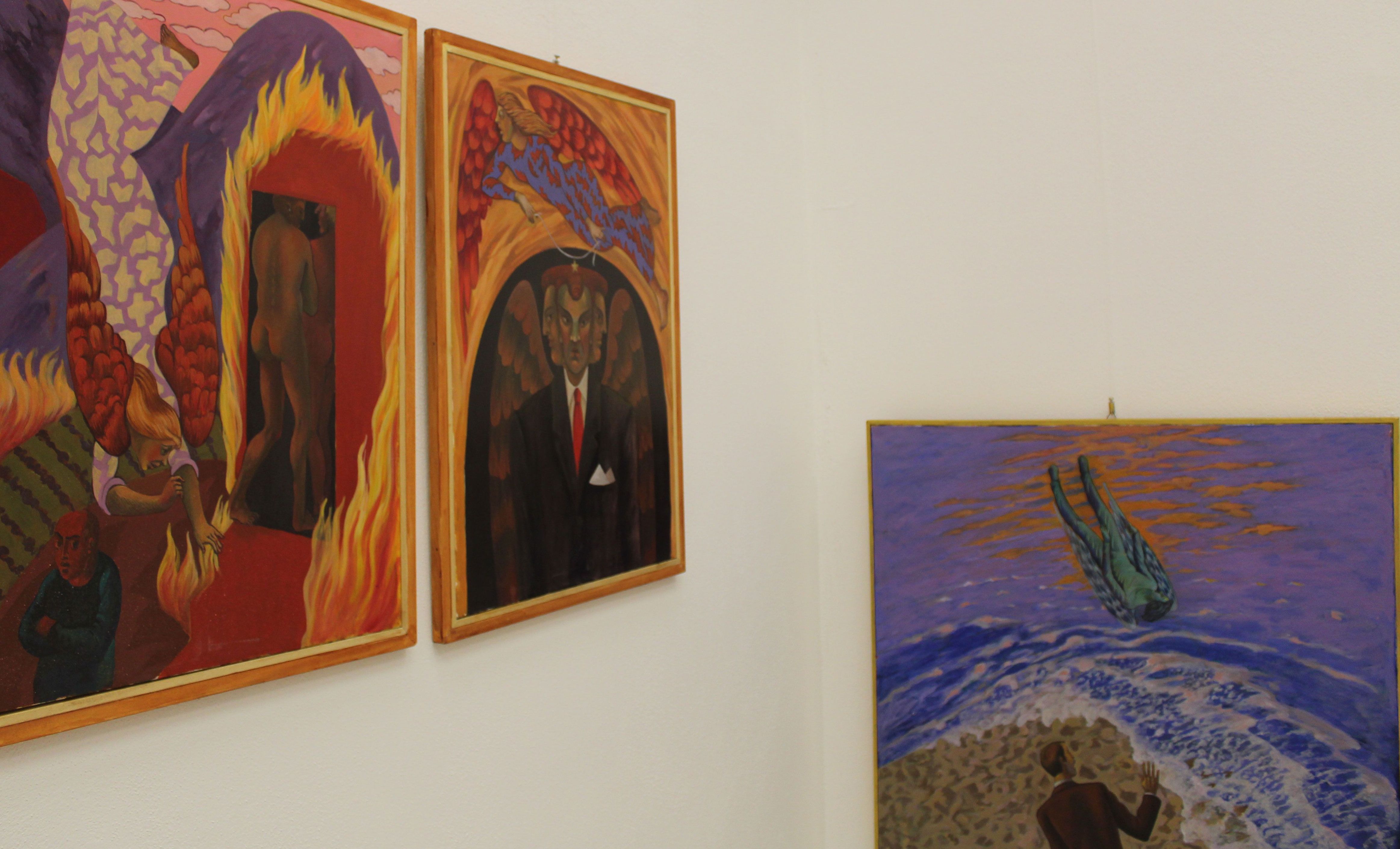 “Oltre le scale”, è un invito ad uscire dall’ordinario e correre un rischio. Ispirato dalla dimensione contemplativa dell’ipogeo di Sottogiudecca, l’artista immagina un luogo di culto privato, in cui mette in scena una personale agiografia dell’uomo contemporaneo in chiave bizantina.