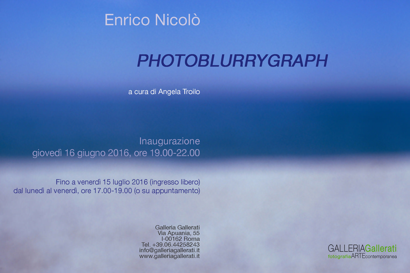 Si inaugura giovedì 16 giugno 2016, alla Galleria Gallerati di Roma, Photoblurrygraph, una mostra personale di Enrico Nicolò a cura di Angela Troilo.