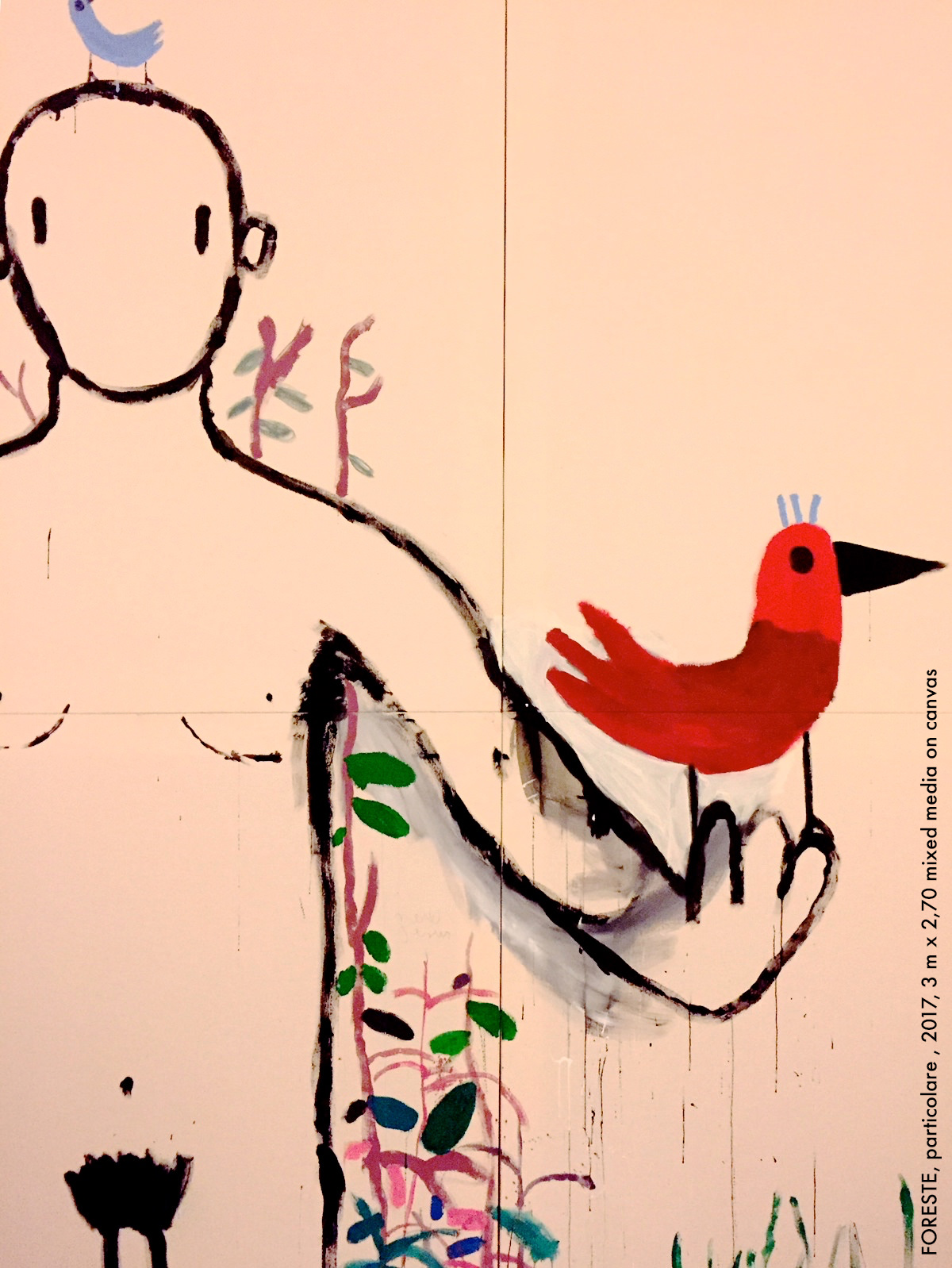Prendendo come punto di partenza il tradizionale genere della pittura di paesaggio Foreste è una riflessione sul conflitto, drammatico e inconciliabile, tra uomo e natura. Figure umane in bianco e nero scrutano una natura lieta e autonoma, dai colori densi, della quale possono essere solo distanti osservatori o violenti colonizzatori. In questa mostra gli abitanti delle foreste escono dalla superficie bidimensionale del quadro nella forma di sculture totemiche che invadono lo spazio, mantenendo lo stesso carattere di alterità e di inconoscibilità che è un sintomo e al tempo stesso una causa della crisi globale.