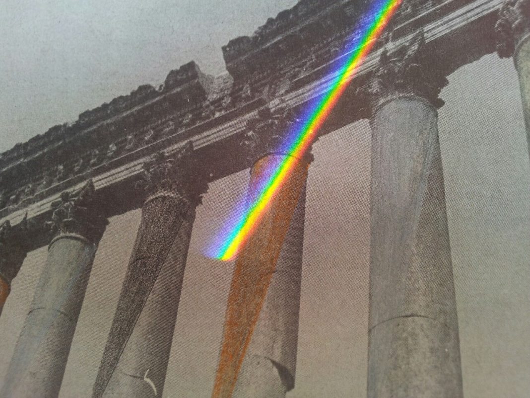 Le fotografie, presenti nel quaderno e in parte stampate in mostra, sono in realtà delle immagini preesistenti che sono state ri-fotografate. Sono tratte da varie pubblicazioni e ripercorrono alcune delle mete percorse da Speer nel suo viaggio immaginario. Attraverso un prisma ottico, sulle immagini è stato provocato e immortalato un effetto-arcobaleno che ricorda gli studi dello stesso architetto sulla relazione tra luce e spazio, compiendo un gioco di rifrazione che si integra alla sua visione architettonica e alle sue teorie in merito alle rovine. E' su queste che, infatti, Speer basa il suo principale studio teorico e pratico, arrivando a elaborare la sua nota Theory of Ruin Value. L'architetto immaginava le sue costruzioni per il Reich in un futuro lontano quando sarebbero diventate macerie e avrebbero immediatamente dovuto ricondurre i posteri all'idea della stessa grandezza che oggi avvertiamo davanti agli antichi monumenti Grechi o Romani. In questa visione, l'idea del tempo passato, presente e futuro si fondono in un unico sogno megalomane di maestosità attraversata dall'idea romantica della contemplazione di una grandezza immortale nonostante il succedersi dei secoli.