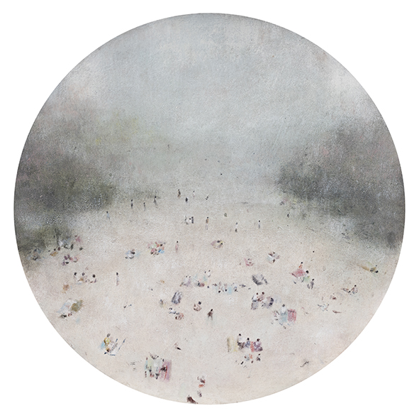 Il titolo della mostra Concerto per carillon, introduce la volontà alla base del progetto: un gioco di risonanze e cambi di scala, in cui al raccoglimento dei piccoli paesaggi fa da contrappunto una grande tela sospesa nello spazio — quasi una quinta di ispirazione teatrale — un fondale che amplifica la portata della visione dell’artista e spinge lo spettatore a entrare in un nuovo rapporto fisico con l’opera. La poetica di Tealdi si rende così magniloquente, non perdendo, nel passaggio di formato e proporzioni, nulla della sua concentrazione espressiva e potenza evocativa.