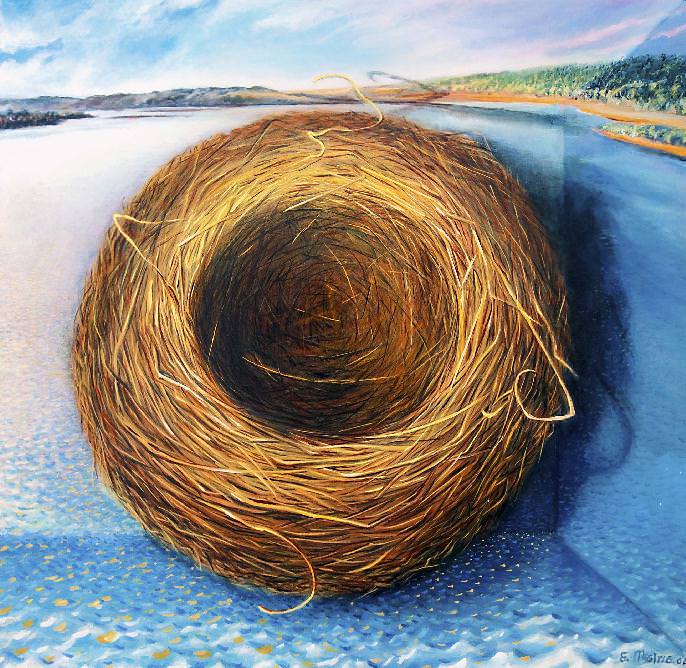 Coinvolge l’Udito che predispone alla dimensione dell’Ascolto dell’Inconscio maremosso (mer-agitée) che si appresta ad innalzare la Grande Onda fin quasi a sommergere la fioca luce del Faro: Solo tra i Soli Viandanti alati che allontanano la Nuvola Nera Fattrice e Nutrice di Uragani per far posto al sopraggiungere di due Profumate melagrane -mammelle che si predispongono, e protendono le loro corone di “dita”
