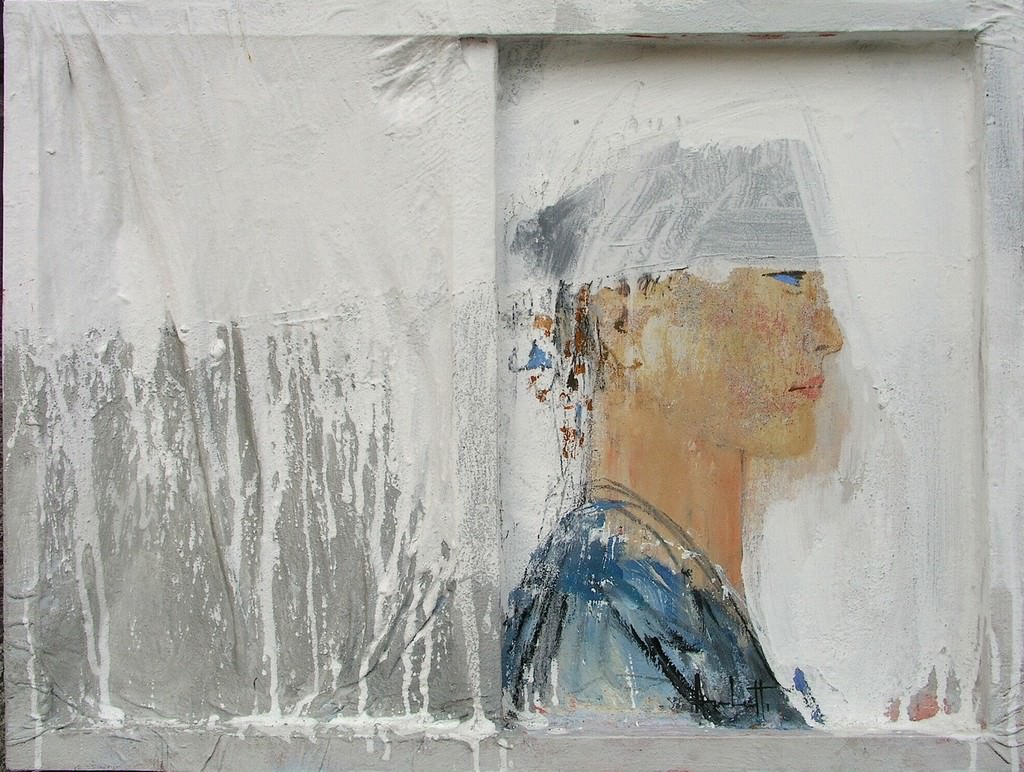 grandi occhi che riflettono gli azzurri del cielo, sono passaggi, racconti, trasparenze, mete lontane e tanti sogni. Sogni che srotolano i loro fili in grado di ricucire anche gli imprevisti, appunti di viaggio lasciati incompiuti, valigie che non servono più, muri che limitano lʼinfinito che è sempre più in là. E così la gente continua il proprio viaggio dallʼalba al tramonto, su strade, sentieri, nelle case, in riva al mare, nello spazio, in collina, nei pensieri e incontra pagine bianche che pretendono di essere descritte con segni e strati di colore”.