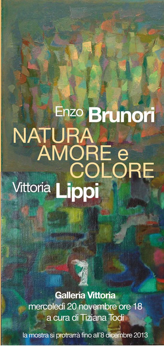 Enzo Brunori e Vittoria Lippi sono ospiti a Roma, dal 20 novembre all’8 dicembre, alla Galleria Vittoria (in via Margutta, 103), di una mostra di confronto e simbiosi, intitolata “Enzo Brunori – Vittoria Lippi: Natura, Amore e Colore”.