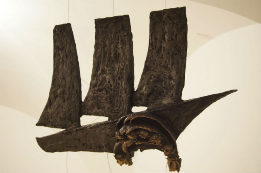 In una breve guida per il visitatore, Vincenzo Mazzarella, che insieme a Sgarbi oltre alla mostra cura anche il catalogo, ci introduce così all’esposizione “La mostra di Enzo Cucchi è un viaggio iniziatico. Inizia con il vascello di bronzo. Con le teste dei cristi che lambiscono le onde delle nubi, (…) e continua con la bussola creata dal gatto, l’unico personaggio vivo. (…) Il mondo nuovo si fonda sulla storia e la storia è fatta di ricordi di morti. Viva è solo la materia dell’artista e le sue visioni non sono memento mori ma sono piccole visioni e astruse immagini”.