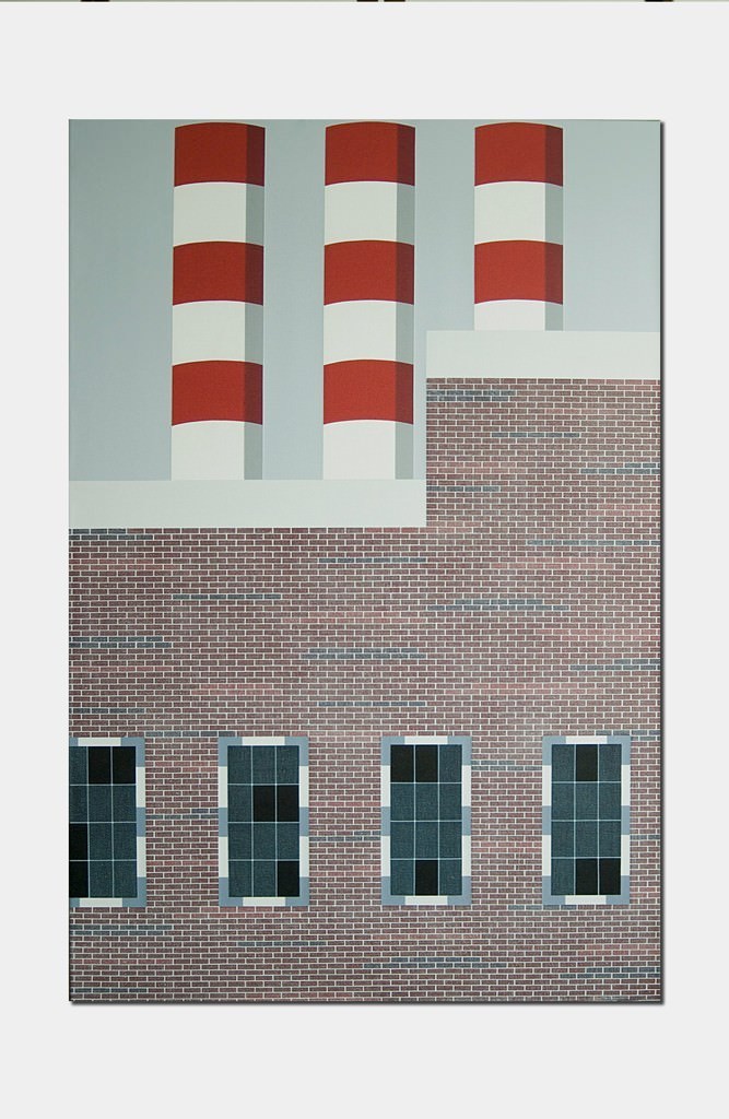 Giocando con il sistema percettivo dello spettatore l’artista si diverte a comporre porzioni spaziali, ad incastrare piani prospettici, ad allontanare la linea dell’orizzonte, a fare e disfare il profilo di queste città di vetro mattoni e cemento. Nemmeno nella finzione pittorica c’è più spazio per la natura, salvo qualche vaporosa nuvola che appare di tanto in tanto come riflesso artificioso sulle finestre, eco lontana di un “sublime” naturale ormai estinto…