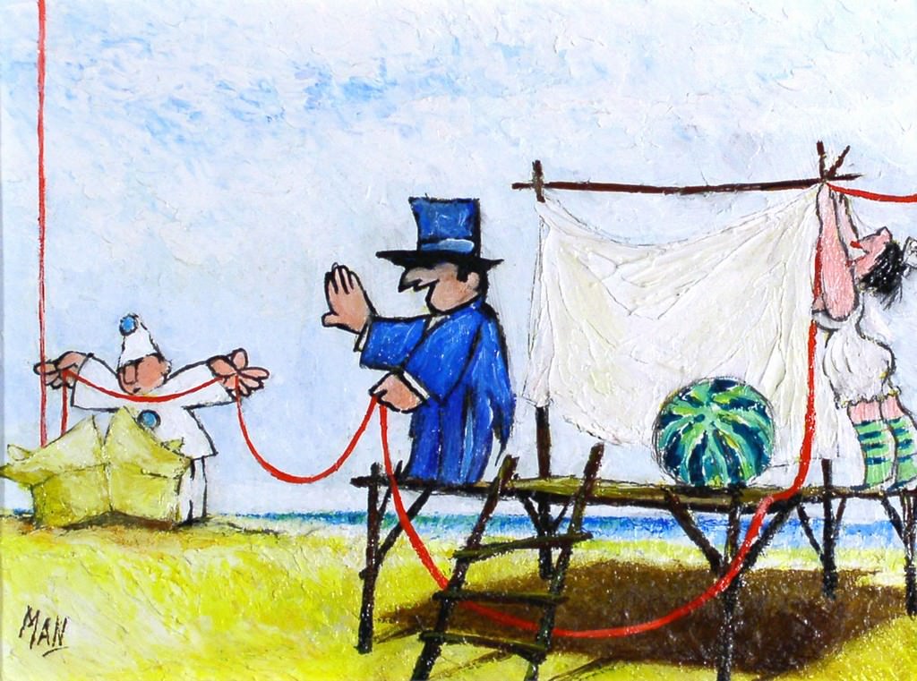 Enzo è grafico pubblicitario ed umorista, ma anche pittore e scultore; Lydia è pittrice ed insegnante: insieme i Maneglia hanno formato e formano tuttora un sodalizio straordinariamente creativo che ha attraversato la storia artistica riminese ed italiana del ‘900. Ironico e tagliente lui, spirito acuto e critico della società consumistica; sensibile ed incisiva lei, in bilico tra emozioni soffuse e forme delicate: su tutto, la grande professionalità e l’impegno serio, nella consapevolezza di essere artisti a tutto tondo.