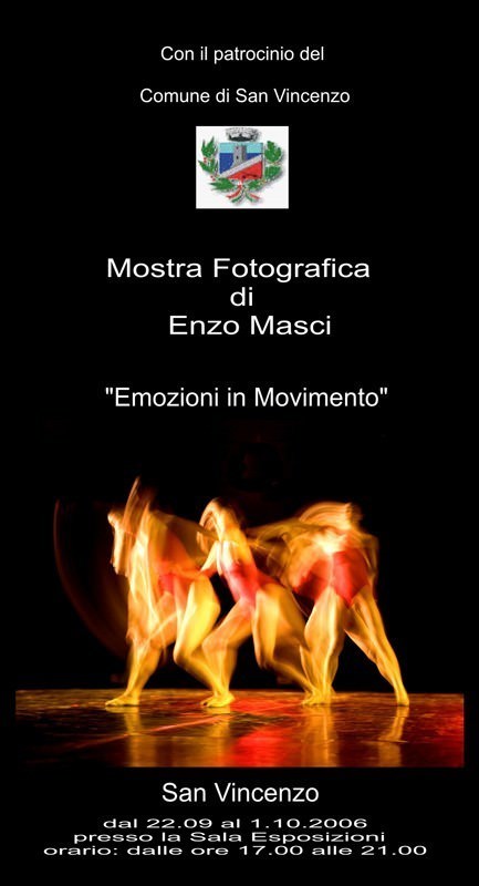 La mostra fotografica dal Titolo “Emozioni In movimento”, trova spunto e riflessione nel magico mondo della danza e del teatro. In tale contesto la ricerca armonica del movimento si sposa con vari stili e tendenze artistiche contemporanee, creando un nuovo linguaggio, sempre più in divenire, ricco di colori e contaminazioni etniche.