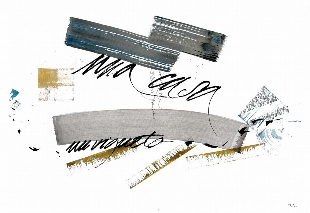 Le altre rappresentazioni delle sue poesie si rivelano essere, invece, una specie di « genius loci » calligrafico, dove la scrittura si tramuta in architettura del paesaggio. Affiorano il marrone, il verde e il blu, colori prediletti dai pittori fiamminghi, usati un tempo per dare maggiore profondità ai paesaggi ed ora sintetizzati in tratti sicuri a delineare lo spazio.