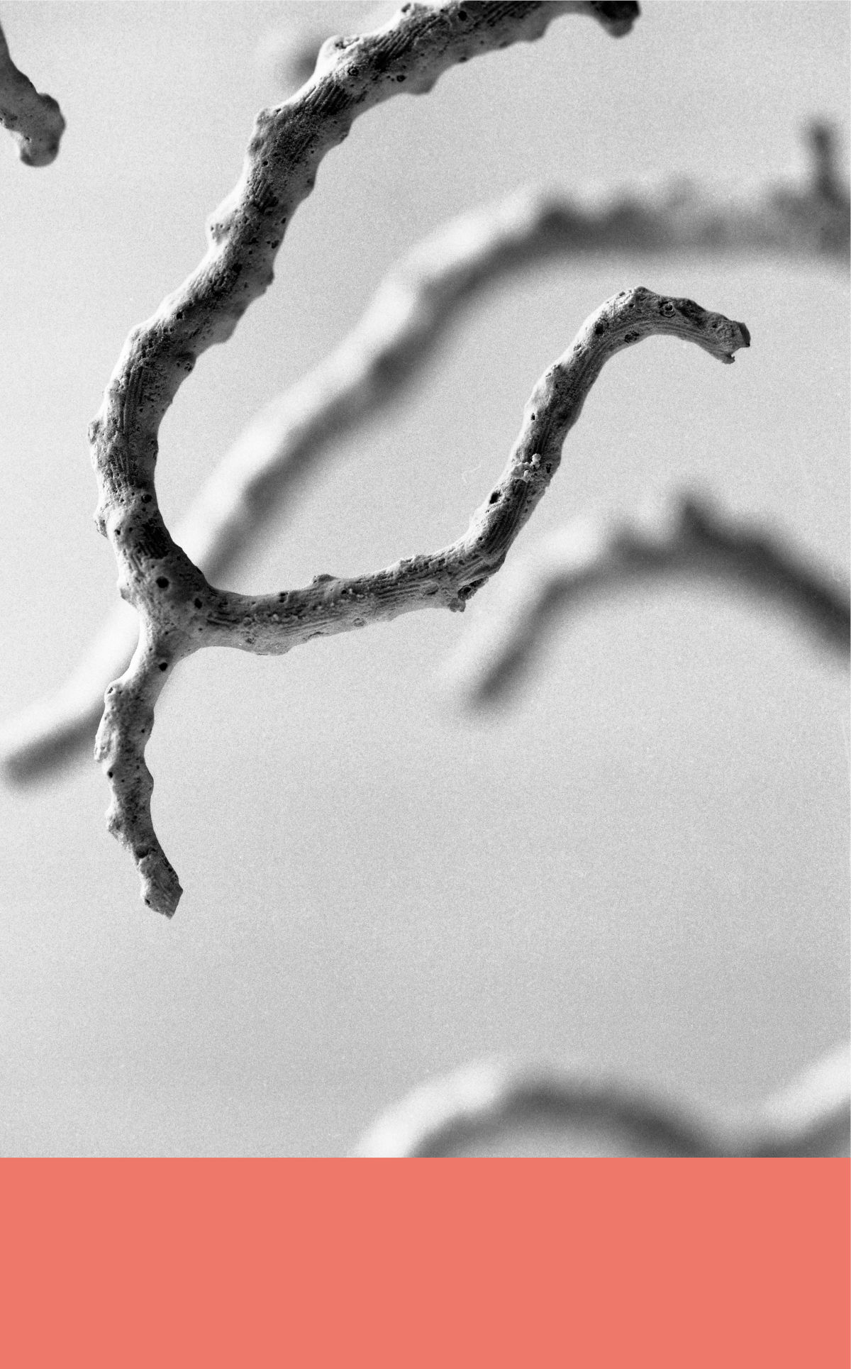 L’origine dell’acqua sul nostro pianeta non ha ancora trovato una spiegazione scientifica certa; generata dalla frantumazione di comete o meteoriti precipitate dallo spazio o da esplosioni vulcaniche in tempi antichissimi, la sua presenza risale nell’immaginario collettivo al momento mitologico della creazione che racchiude idealmente l’esistenza possibile di ogni cosa. Il suo è un tempo lunghissimo, la cui comprensione ci sfugge e che possiamo solo provare a immaginare, ad esempio osservando le immagini che la natura ha conservato attraverso milioni di anni, come nel caso dei fossili all’interno delle Argille azzurre, oggetto d’indagine nell’intervento di Barbara De Ponti (Milano, 1975) che apre il ciclo espositivo nel mese di gennaio 2023. Per aiutarci a immaginare questo tempo antico della Terra e l’origine dei composti nei loro processi di formazione e mutamento, possiamo scavare nei luoghi della biologia, della micologia e dell’entomologia osservando i fenomeni della vita che governano gli esseri viventi. Lo studio degli organismi e il tentativo di coglierne le forme nei processi di trasformazione è al centro della pratica di Fabio Marullo (Catania, 1973) che presenta il proprio intervento nel mese di febbraio 2023. La natura delle specie sulla Terra non è però da darsi per scontata, come nel caso di piccoli animali a forma di sacca che vivono in colonie molto grandi e che, fissando il calcare dell’acqua, costruiscono uno scheletro minerale collettivo che si ramifica: i coralli, rosso vivo. Michele Guido (Lecce, 1976), nel mese di marzo 2023, si concentra sul fenomeno di sbiancamento globale di questi organismi che rischiano di scomparire a causa delle emissioni di CO2 che dall’aria si riversano negli oceani alterandone il ph.