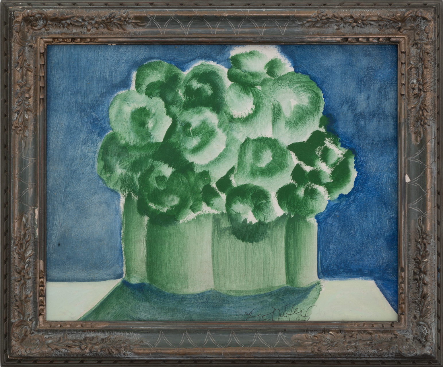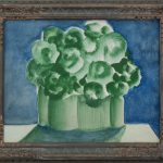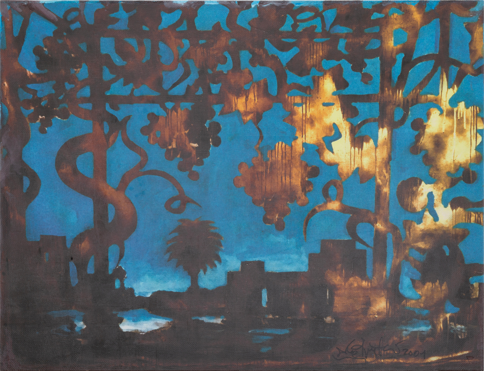 Dipinge atmosfere salentine, visioni oniriche, paesaggi quasi orientali con masserie e palme all’orizzonte. Il suo gesto naturale fa nascere germinazioni, viti, vigne, uva, fiori, frutto di un’alchimia di energia, poesia, passione, colore e materia che si trasformano in una forza quasi primordiale. Una narrazione visiva ricca, straripante, piena di vita, che si nutre della sua sensibilità mediterranea.