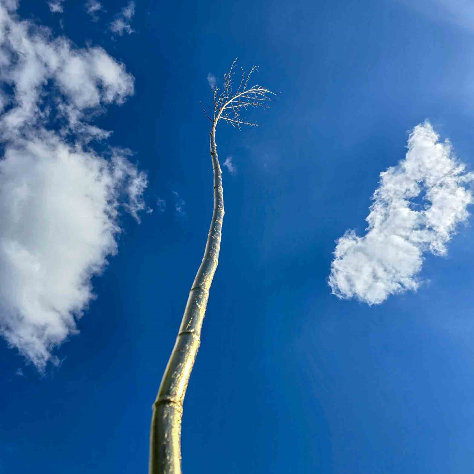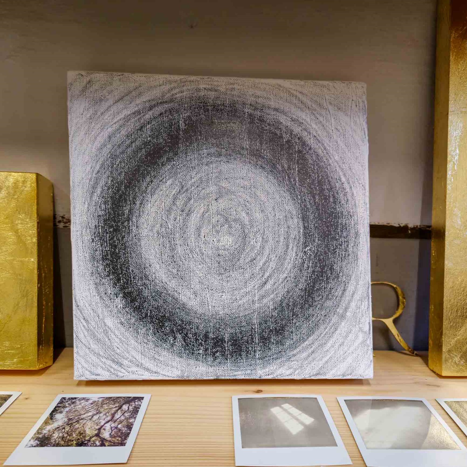 Nei tre ambienti espositivi il segno performativo di un neon, il segno di alcune opere luminose, il segno mistico della foglia d’oro. Il segno di delicate forme naturali impresse dalla forza del sole e su differenti forme e dimensioni monocromie dipinte restituiscono passaggi ed estratti di luce diffusa, testimonianza pittorica delle variazioni cromatiche del cielo italiano. Declinano raccontando lo scorrere diurno e notturno. Ettore Spalletti il chiaro riferimento. Metafora di questi segni sono la memoria e il tempo, fisico umano etereo.
