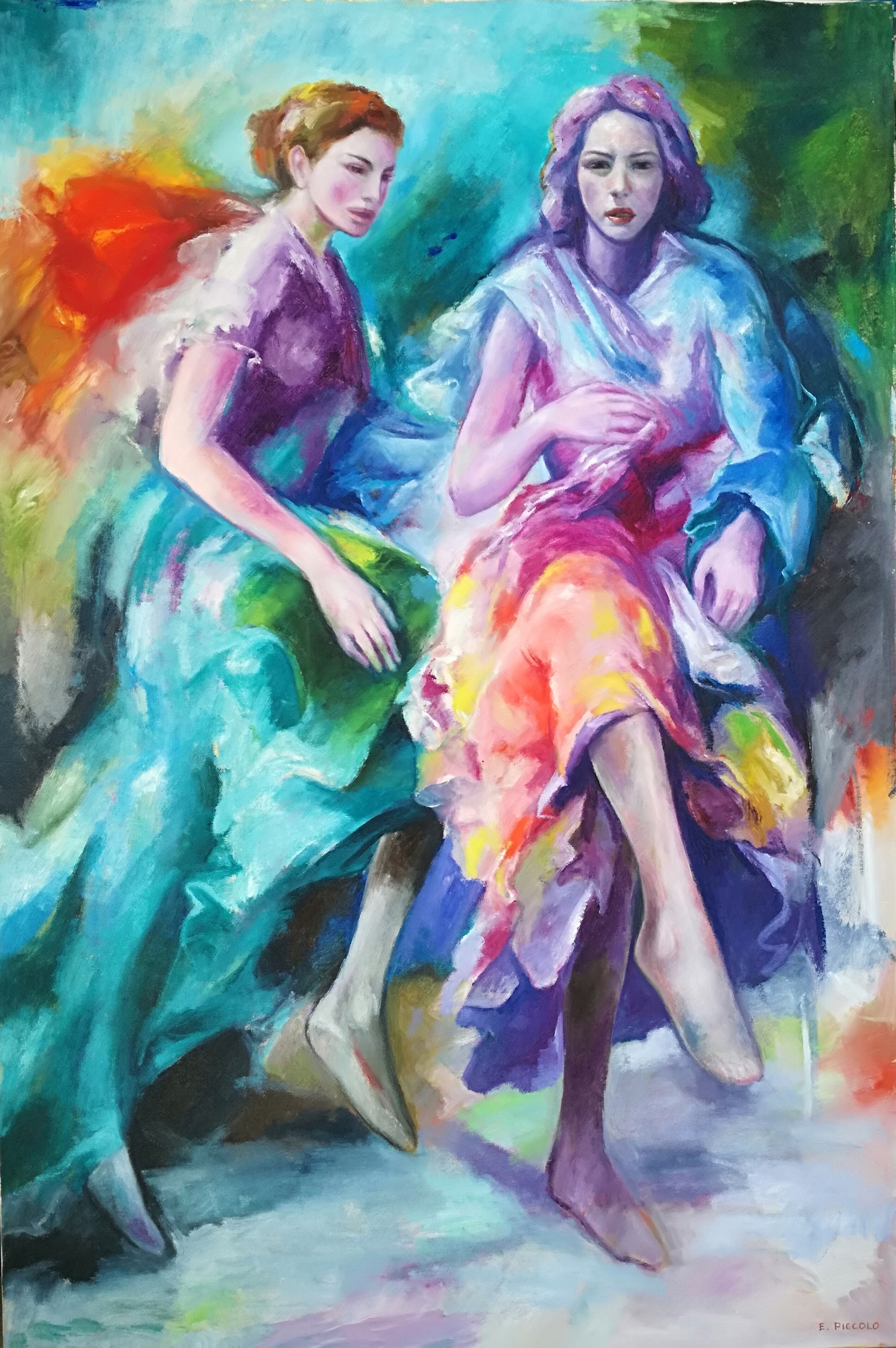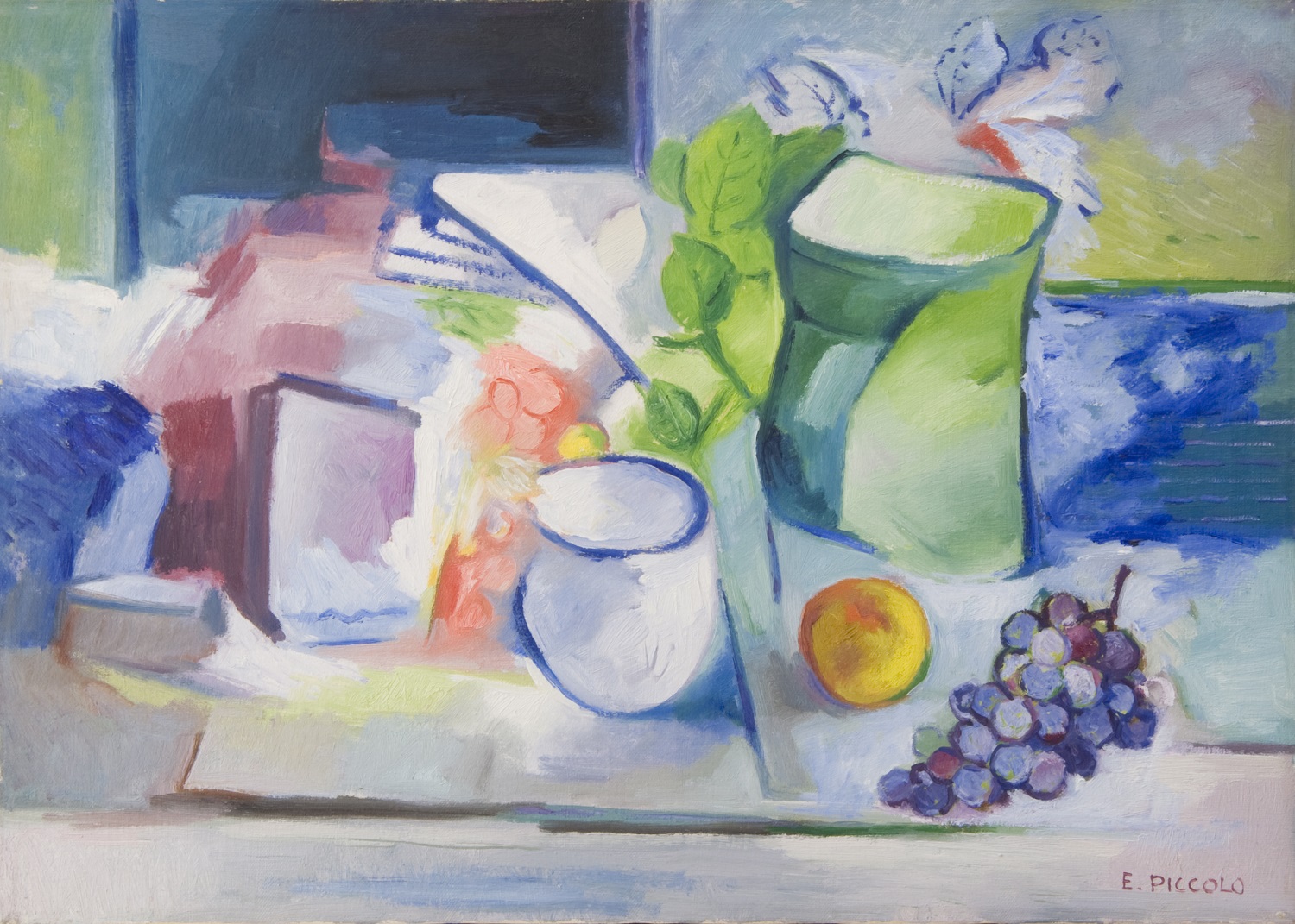Francesco Ciaffi, in catalogo, scrive che “Osservando, dunque, le opere di Ernesto Piccolo, siano esse dipinti a olio, acquerelli, serigrafie, litografie o incisioni, si rimane spesso colpiti dalla presenza, in una composizione ascrivibile all’ambito della figurazione, di elementi estranei come solidi geometrici o campiture cromatiche che rimandano ad atmosfere astratte dove gesto e colore confondono la comprensione immediata dello sguardo, quasi fossero il tentativo di catturare la forma di un ricordo”.