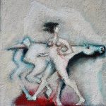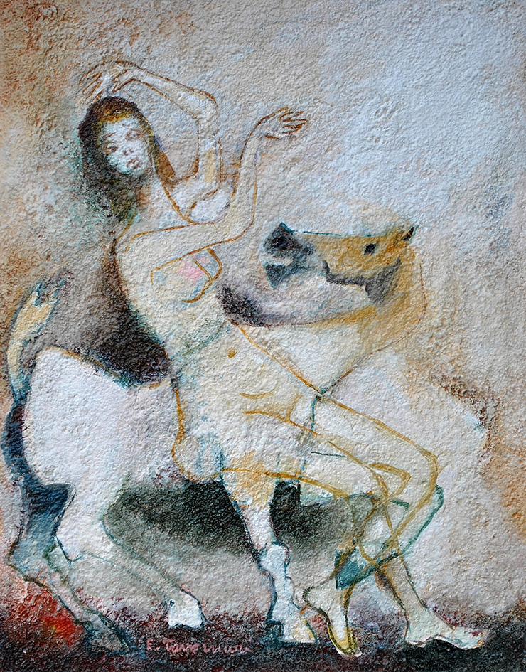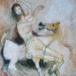 Nei suoi quadri, d’una grana che suggerisce il fascino affrescale, giocano le forme, ma soprattutto i colori.
