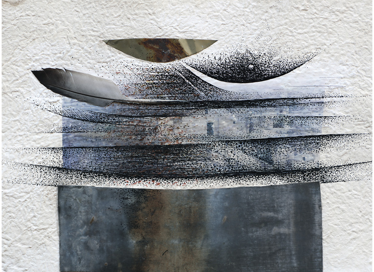 A tal proposito Davide Speranza nella presentazione della mostra cosi scrive:”…tra queste 2 Matere lo sguardo dell’artista si è affinato, non solo china ,olio o acrilici. Utilizza materie estrapolate dalla realtà-e le trasforma in rievocazioni della stessa. Legni, pietre, barattoli, garze,. La pittura si fa lentamente scultura. I demoni dell’umanità e i suoi arcangeli sfondano la parete ed entrano nel plesso solare dell’osservatore. Le sue sono vedute di un artista che continua a raccontare il suo tempo. Ne sono esempio i suoi territori vesuviani, la terra del Sarno, i paesaggi del mare e “le terre dei fuochi”, quando utilizza la superfice ondulata e irregolare dei cartoni, per rappresentare il senso dello stupro. Uomo, natura, storia, memoria..