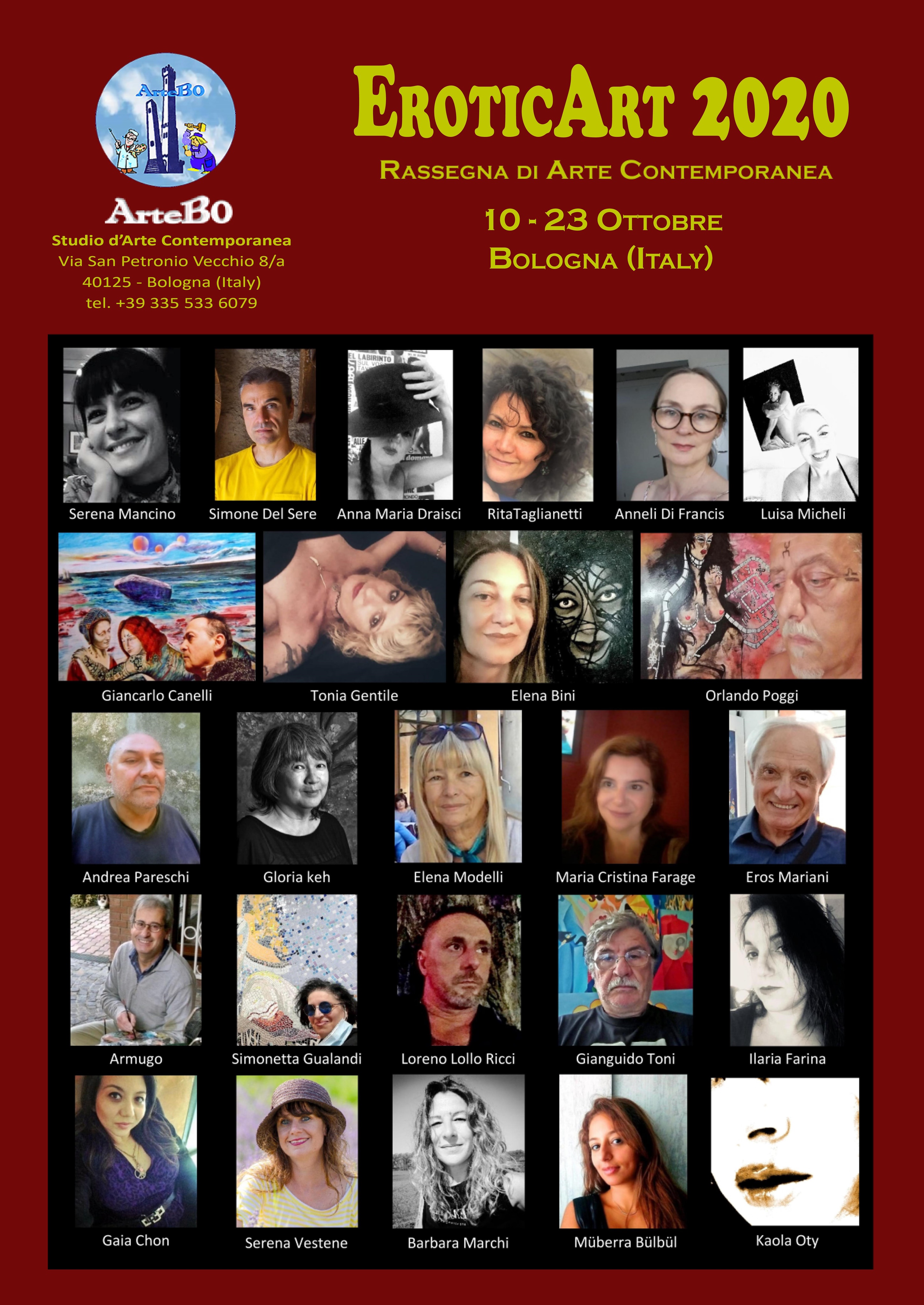 Oltre 25 artisti del panorama nazionale ed internazionale partecipano a questa 9^ edizione di EroticArt con opere a tema eros che spaziano nelle varie tecniche di arte visuale. La mostra è divisa in tre sale con quella intermedia riservata alle opere più forti. Catalogo a richiesta euro 10.