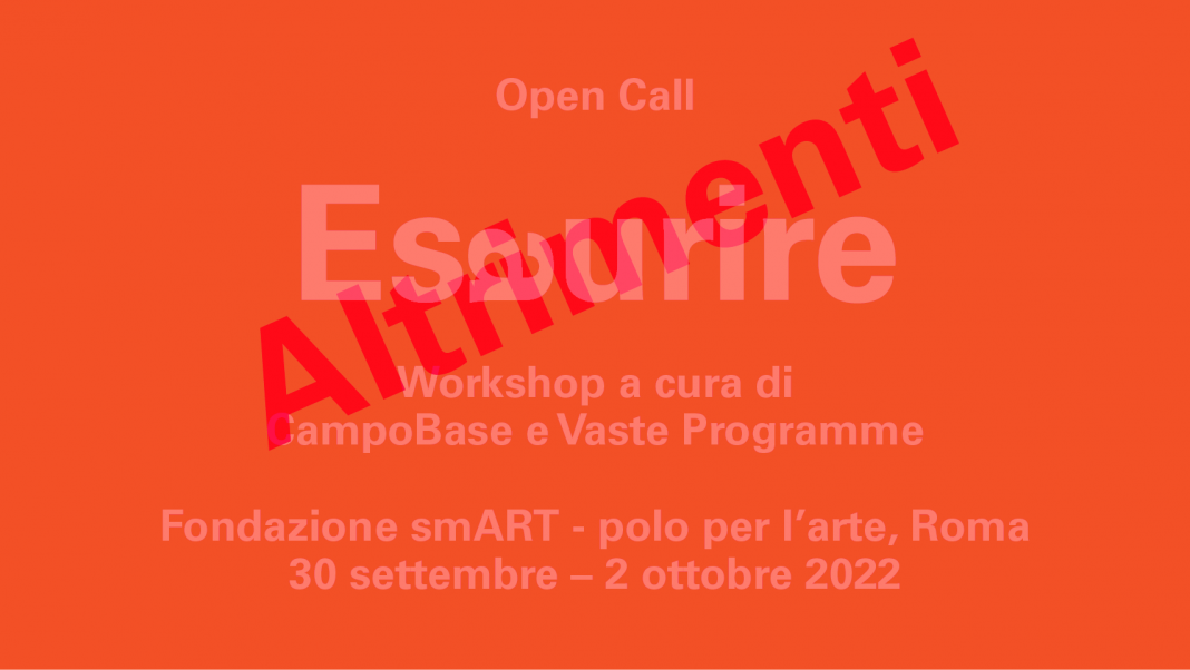 Dal 30 settembre al 2 ottobre si svolgerà Esaurire/Altrimenti un workshop promosso da CampoBase e Vaste Programme, in collaborazione con Fondazione smART in cui i partecipanti, attraverso la pratica dello storytelling, costruiranno una speculative fiction partendo da esperienze personali.