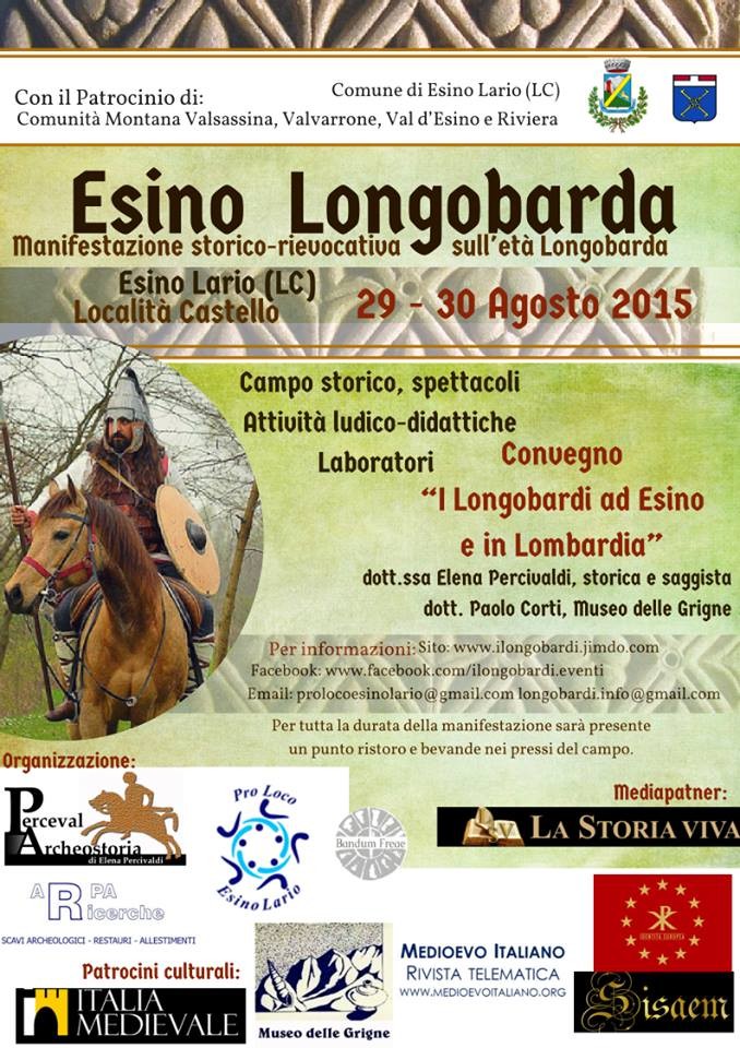 “Esino Longobarda” è organizzata da Pro Loco Esino Lario con la collaborazione di Perceval Archeostoria, Bandum Freae e Ar.Pa. Ricerche e si avvale del patrocinio istituzionale di Comune di Esino Lario e Comunità Montana Valsassina, Valvarrone, Val d’Esino e Riviera, e culturale di Associazione Culturale Italia Medievale, SISAEM (Società Internazionale per lo Studio dell'Adriatico nell'Età Medievale), “Medioevo Italiano rivista telematica”, Associazione Amici del Museo delle Grigne ONLUS, Associazione Identità Europea.