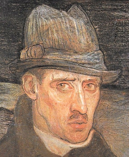 Seconda sezione: Fondigli umani e umana verità. La figura umana (ritratto, figura intera, gruppo) emerge fin dall’apprendistato accademico, affrontata con un realismo che sfiora un’evocazione intima della fragilità umana. Le figure sono state il soggetto anche di grandi cicli ad affresco di sapore novecentista, di cui in mostra si documentano le fasi preparatorie con bozzetti e disegni. Inoltre, l’ironia straniante con cui sono ritratti personaggi apparentemente normali, che sembrano posare per una foto ritratto e che indossano una maschera, quella per le feste di carnevale o quella per tutti i giorni, come attestano i dipinti Maschere di paese (esposto alla Biennale di Venezia del 1930) e Le sorelle Triaca.