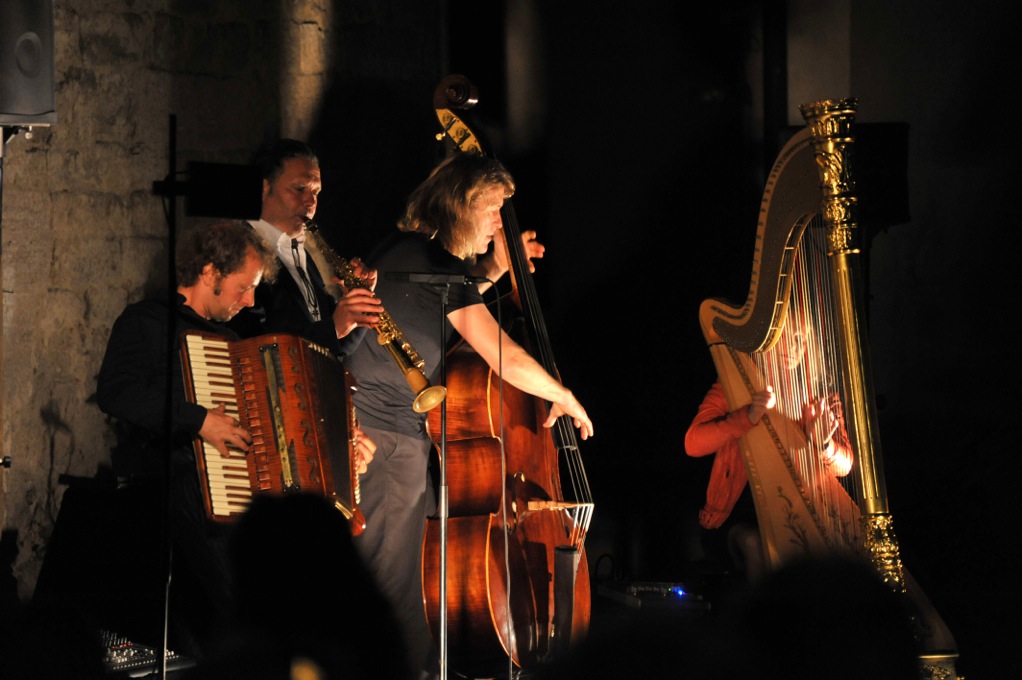 Con i sassofoni e clarinetti dell’elegante bohémien Mulo Francel, il contrabbasso inimitabile e le percussioni di D.D. Lowka, le vibrazioni latine della fisarmonica e vibrandoneón di Andreas Hinterseher, e con l’accento antico dell’arpa (e salterio) che si trasforma in una chitarra ritmica di Evelyn Huber, i quattro virtuosi musicisti del viaggio musicale della vita, approdano nella Piazza del Casalino del Castello di Montegemoli (Pomarance – PI), domenica 14 luglio 2013, ore 21.30, e concludono in grande stile la collettiva di arte contemporanea “M’arte” - Montegemoli Arte - Quarta edizione 2013. (Prima del concerto in programma anche una “piccola cena” presso il centro l’Agresto a Montegemoli, info: + 39 328 9364553).
