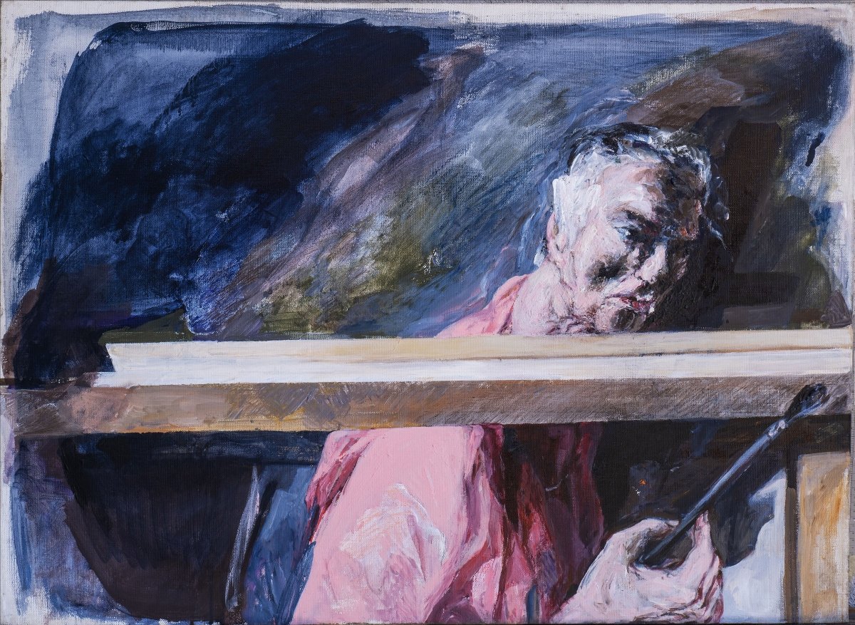 Gli anni Novanta segnano una nuova fase di ricerca pittorica, orientata all’indagine dell’identità e della forma. Nascono i cicli Il mare accanto e Ambiguità dell’intravisto. In esposizione tre opere significative: Uomo che guarda il mare, Donna e il mare (1992), e Eretto antropomorfo (1993), testimonianza di una visione sempre più intimista e simbolica.