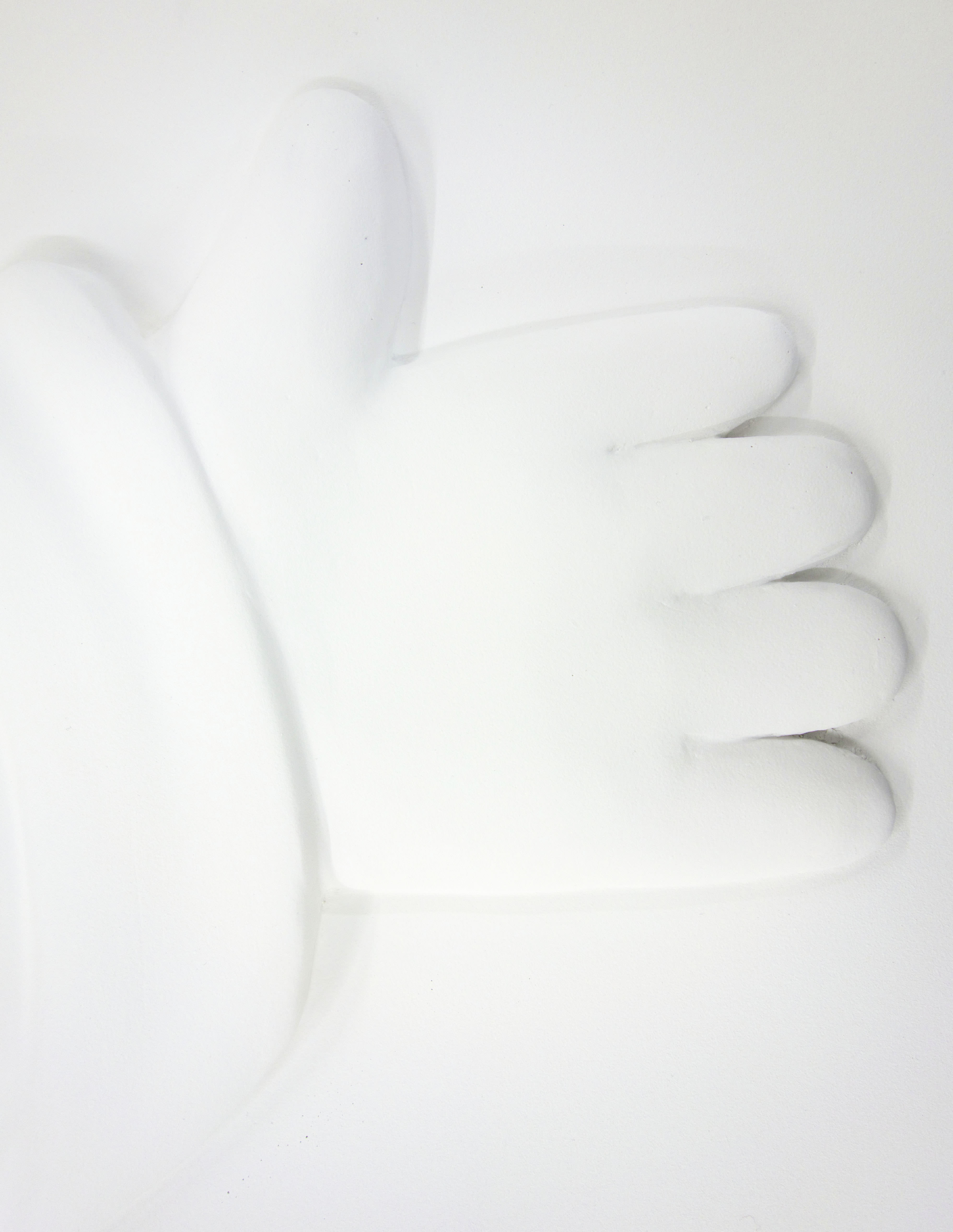 Caratterizzati dalle notevoli dimensioni, i cinque rilievi in vetroresina presenti nella mostra sono il risultato di una nuova metodologia di lavoro. Nel tentativo di indagare la relazione tra iconografia e formalismo, l’artista ha immortalato in una serie di fotografie la giocosità di un pappagallo, la sacra monumentalità di una statua della vergine Maria, e la sfacciata allegria di un ragazzo e una ragazza che giocano e sorridono verso lo spettatore. Stampate a grandezza umana, e scolpite in rilievo con uretano ad altissima densità, argilla e gesso, queste immagini primarie vengono poi fissate su un pannello dalle dimensioni proporzionali all’immagine raffigurata, modellate in vetroresina e infine dipinte di bianco con una resistente pittura lavabile per interni.