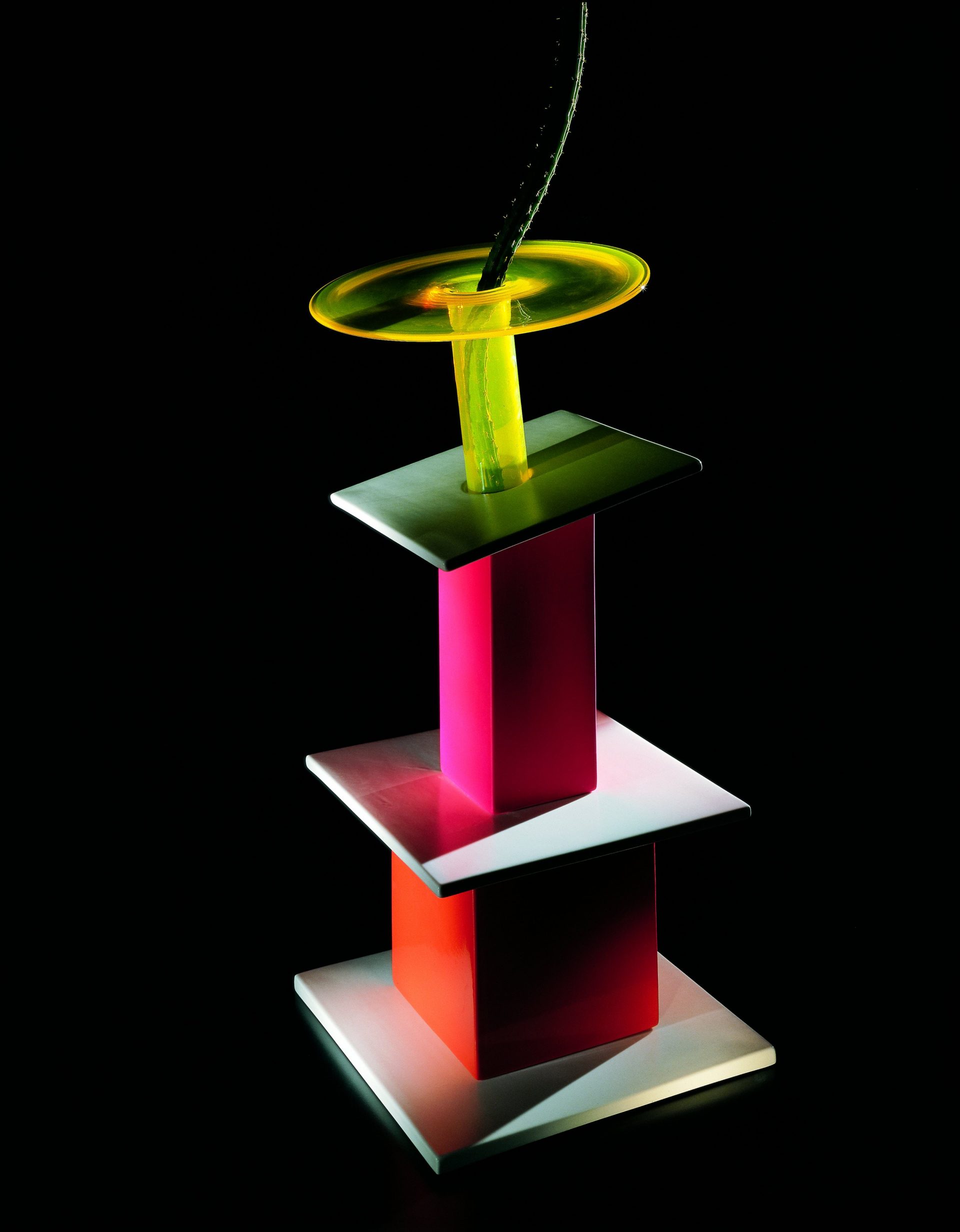 Il percorso parte dai vasi bianchi della serie Yantra – il cui nome, un termine sanscrito che indica un diagramma mistico in cui si intrecciano nove triangoli, rimanda alla ripetizione di forme geometriche di questi oggetti; tocca gli anni ’80 con vasi e fruttiere che si aprono al colore; termina con una delle ultime serie, una collezione di quattordici vasi e contenitori in ceramica e vetro prodotta nel 2003, ognuno con il nome di un uccello. Di questa serie verranno presentate anche prove d’artista e prototipi, insieme ai disegni preparatori e bozzetti.