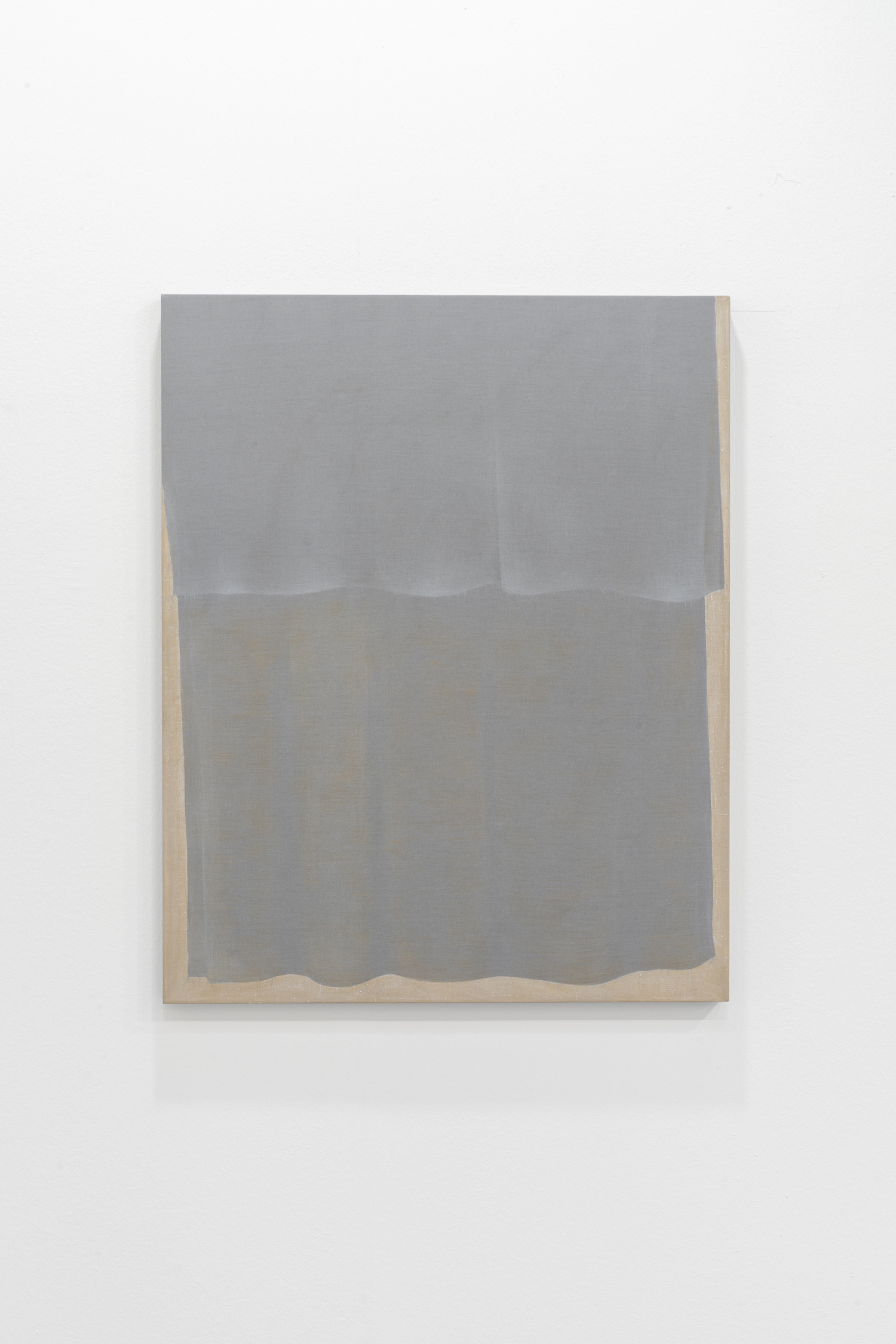 olio su stoffa di cotone grigia, matita