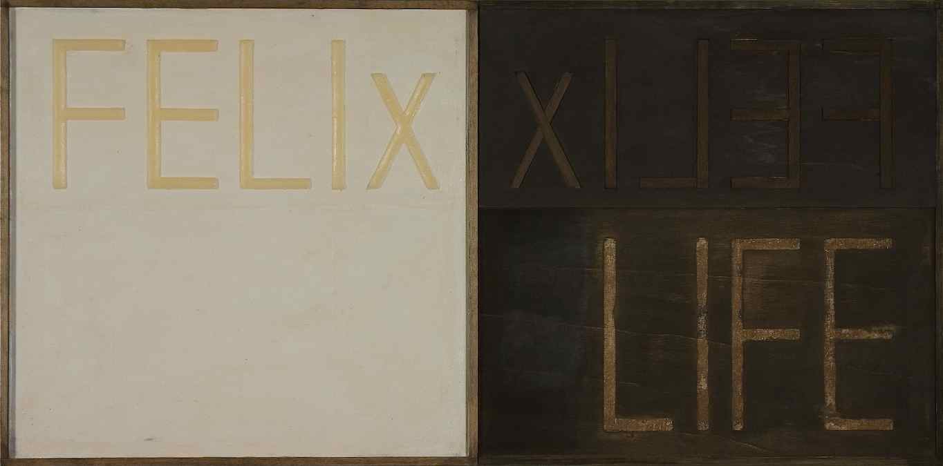 The body of works FelixLife (2008) is composed of twelve "diptychs” in mixed media on wooden panels (each 54 x 110 cm); in this previously unseen cycle Eugenio Ferretti reflects on an existential theme with distant roots: life and the aspiration to happiness. In line with his previous work, Ferretti has used the combination of the words “Felix” and “Life”, a combination that as well as metaphorically expressing the complexity of the theme, testifies to the idea that the word life already contains the concept of happiness (and vice versa). On a conceptual level the compositions are resolved with a polarity of elements: as well as being diptychs, part of each work is in relief, part is incised, one word is in Latin, the other in English and yet the artist avoids any mechanical formalism; “FelixLife” is in fact an imperfect anagram. The idea of indetermination is also evident in the use of colours, never pure, but rather enigmatic and undefined, just as the bottom left quadrant in every work is indeterminate and illegible. These works with their “lapidary” strength, also reference the obsession of happiness that characterises the contemporary world, an obsession that is at times reduced to a “pseudo-happiness” or sterile appearance of a happy life.
