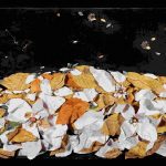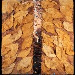 I collage di Petrocchi uniscono infatti elementi fotografici e naturalistici di forte impatto emotivo, di grande forza evocativa come testimoniano in mostra sia i primi lavori come Viale profondo (2013) , sia il più recente …e se i melograni, il tabacco, la santolina e la salvia selvatica fossero dispersi nell’universo… (2024). Qui le foglie di tabacco sono disposte su una superficie incurvata, come quella della Terra, come se si fossero ammassate ricoprendola interamente. Ma in realtà tendono a staccarsi dalla superficie e a volare via disperdendosi nel cielo dell’Universo e con esse le altre essenze di melograni, salvia selvatica, santolina, e gli altri baccelli. Il rischio della perdita di elementi naturali può essere, è reale.