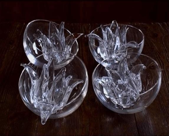 Saranno esposte le opere in cristallo del 2005, “Il giardino dei semplici”, colonne modulari luminose, e “Racchiuso come l’acqua”, fiori di loto dalle forme diverse in semisfere perfette.