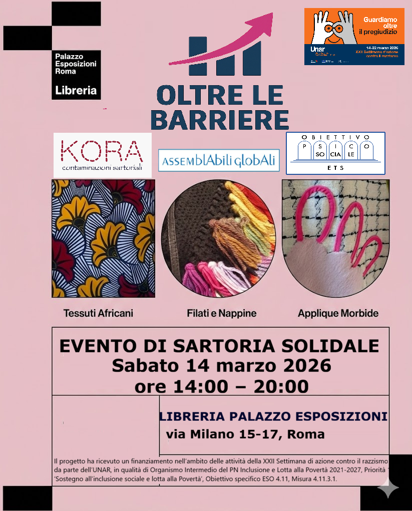 Una giornata dedicata alla creatività, all’inclusione e al lavoro artigianale. Esposizione dei prodotti realizzati dalle sartorie KORA Contaminazioni Sartoriali, Solidarietà al Quadrato e Insieme Solidali, all’interno della Libreria del Palazzo Esposizioni
