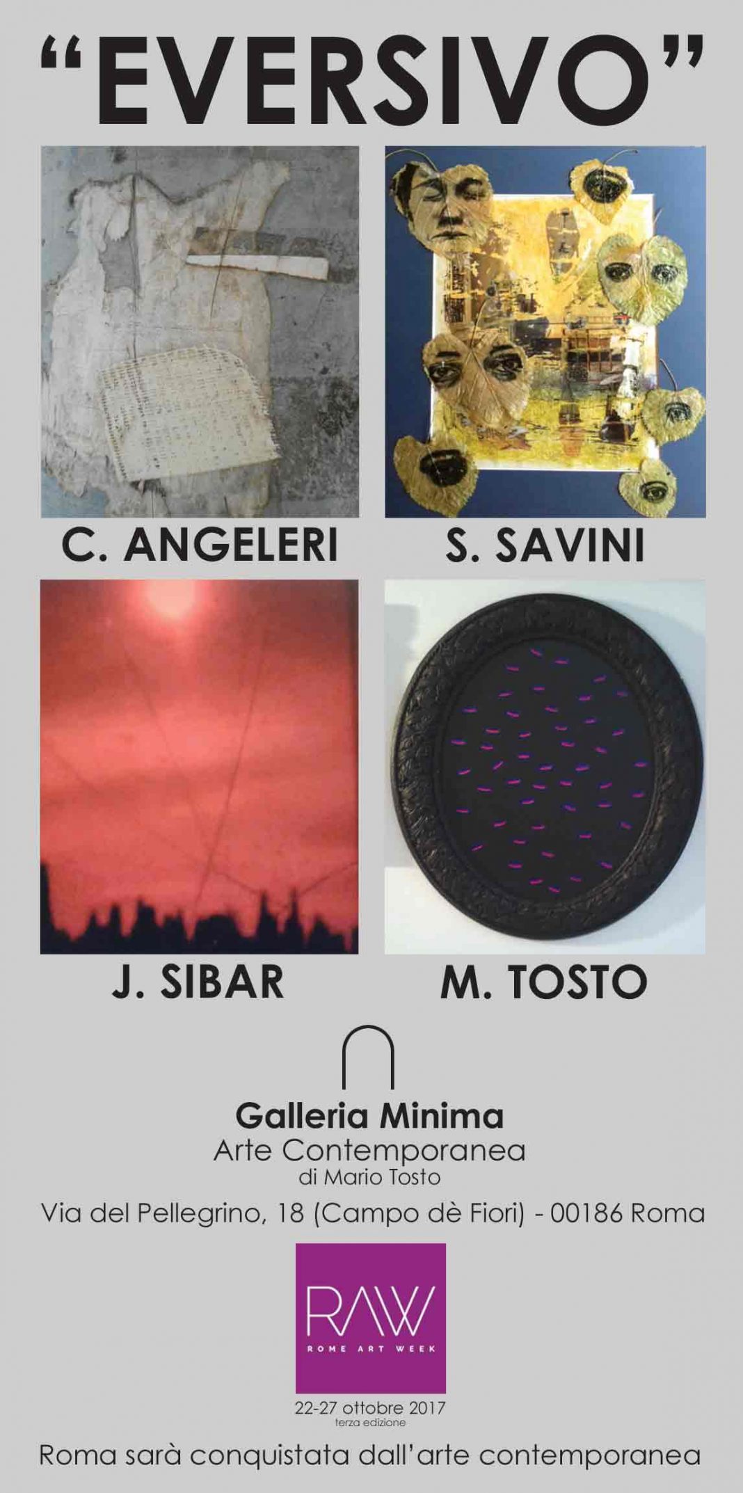 In occasione della Rome Art Week- RAW 2018, la Galleria Minima propone la mostra collettiva di Cosimo Angeleri, Sara Savini, Jane Sibar e Mario Tosto, dal titolo “Eversivo”.