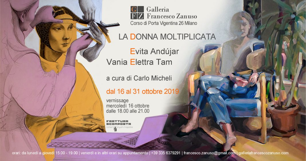 "La donna moltiplicata" è il titolo della bi-personale curata da Carlo Micheli, che si terrà presso la Galleria Francesco Zanuso, da mercoledì 16 a giovedì 31 ottobre. Le due artiste chiamate a realizzare questa mostra sono Evita Andújar, andalusa di nascita, romana d’adozione e la comasca naturalizzata milanese Vania Elettra Tam.