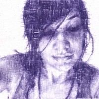 Mi hanno invitata a una mostra di Marco qualche anno fa e ricordo che mi sono ritrovata ad osservare nel dettaglio una sua opera nel tentativo – vano!- di seguirne l’esecuzione, perchè da vicino sembra un agglomerato di segni e tracce colorate. Ricordo che i suoi segni mi hanno ricordato i pixel con cui si compongono le immagini al computer, e che, allontanandomi, ho scoperto come ogni tratto corrispondeva a un’ombra, a un ciglio, a una ruga d’espressione del volto di chi stavo osservando.